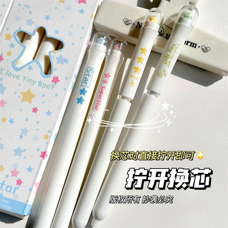 幸运星星景观旋转扭扭中性笔高颜值ins风学生考试速干刷题笔黑笔