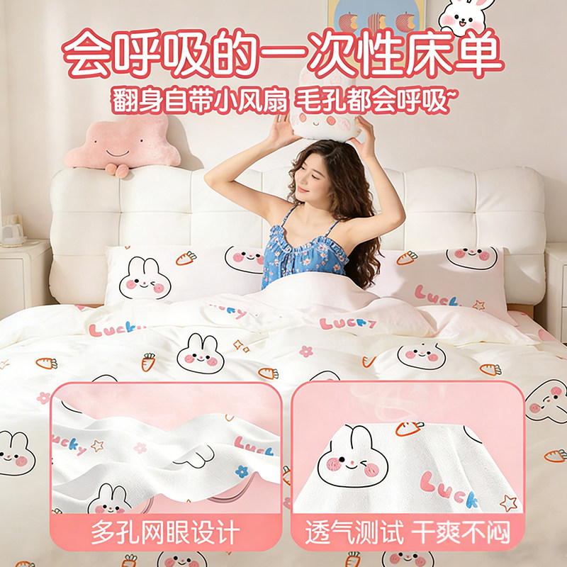 旅行一次性床单被罩枕套酒店出差双人床四件套装加厚隔脏印花睡袋