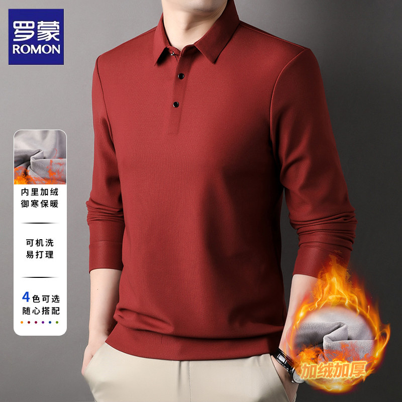 罗蒙加绒加厚POLO衫卫衣男士冬季商务休闲保暖亲肤柔顺打底衫上衣