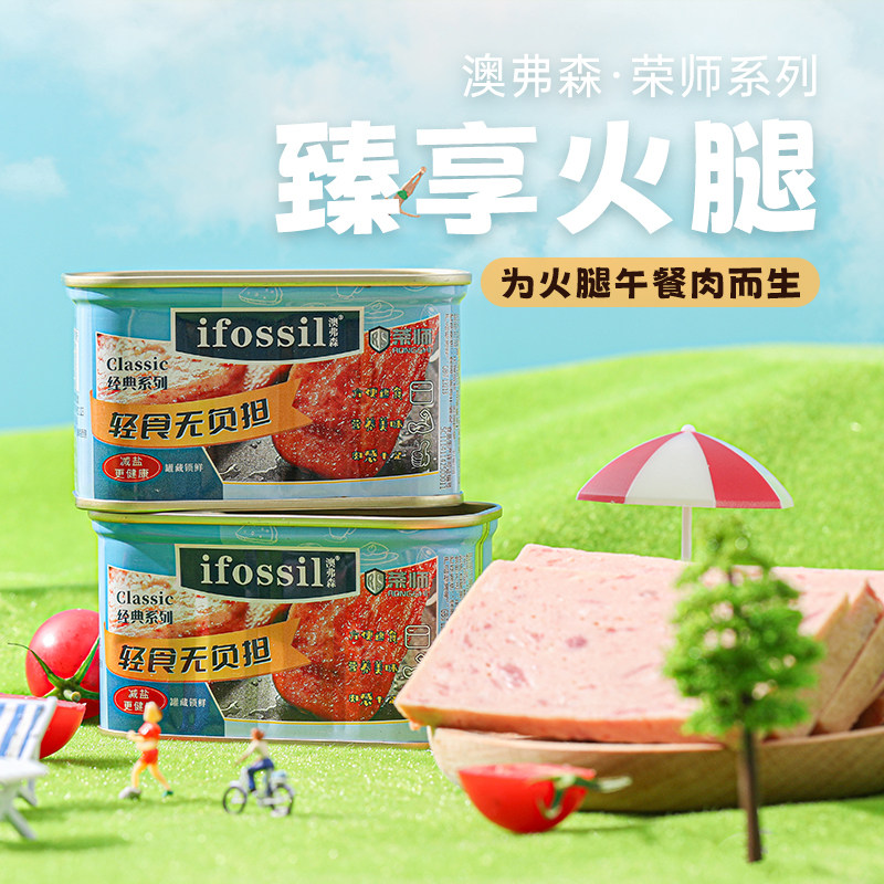 ifossil澳弗森荣师臻享火腿午餐肉罐头户外便携方便肉香浓郁
