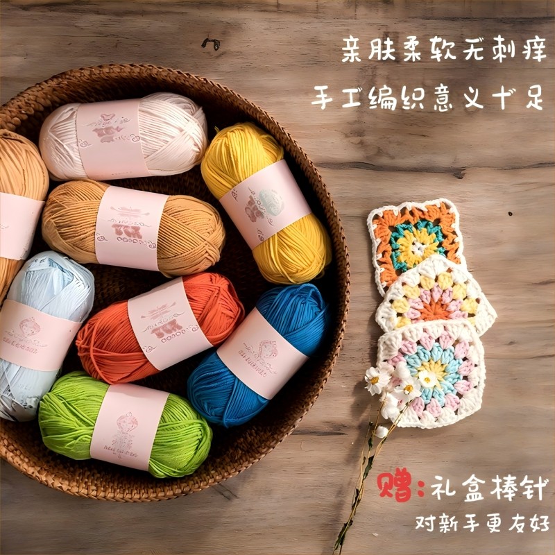 乐织4股精梳棉牛奶毛线团手工编织diy钩针花束玩偶材料包宝宝毛衣