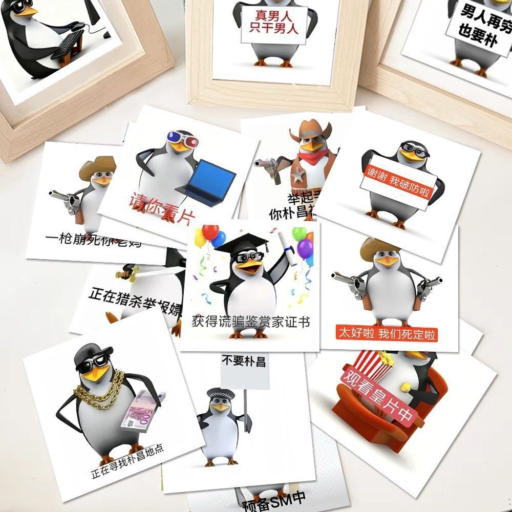 高雅人士企鹅贴纸抽象表情包恶搞恶俗马达加斯加沙雕梗图手账笔记创意贴画信封口贴电脑手机壳平板iPad装饰qy