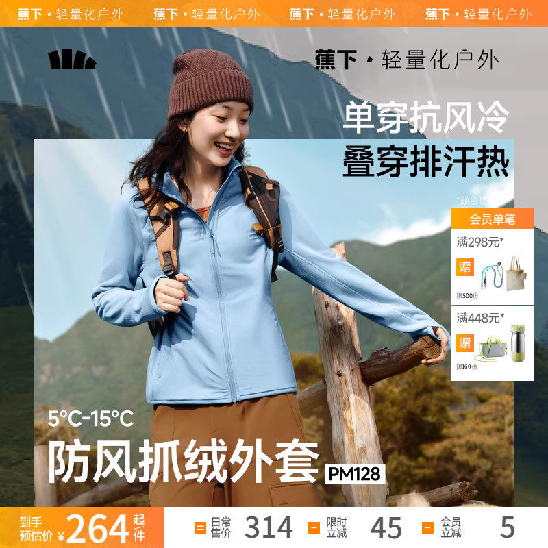 蕉下防风抓绒外套女新款修身内胆轻薄高弹户外休闲摇粒绒早秋外套