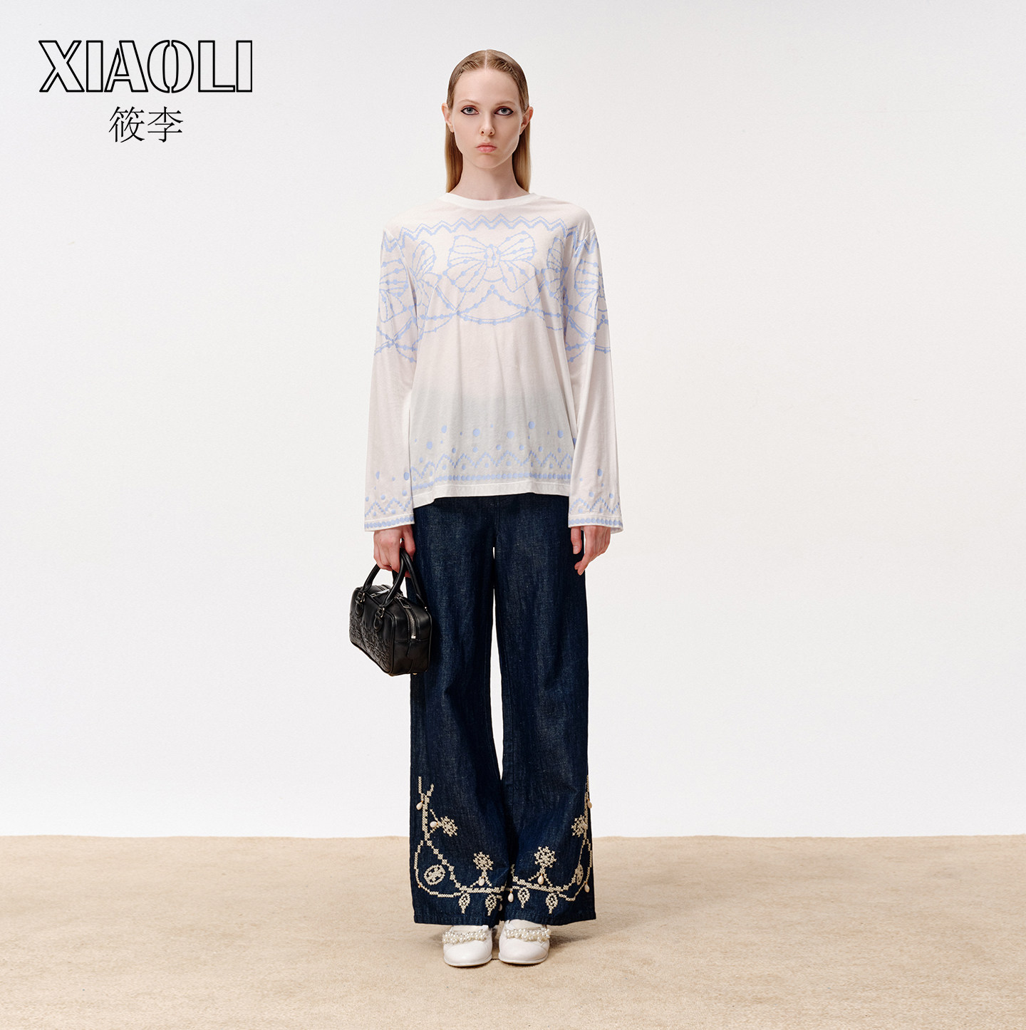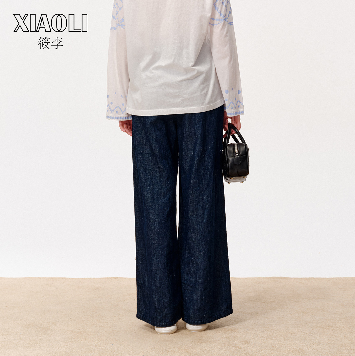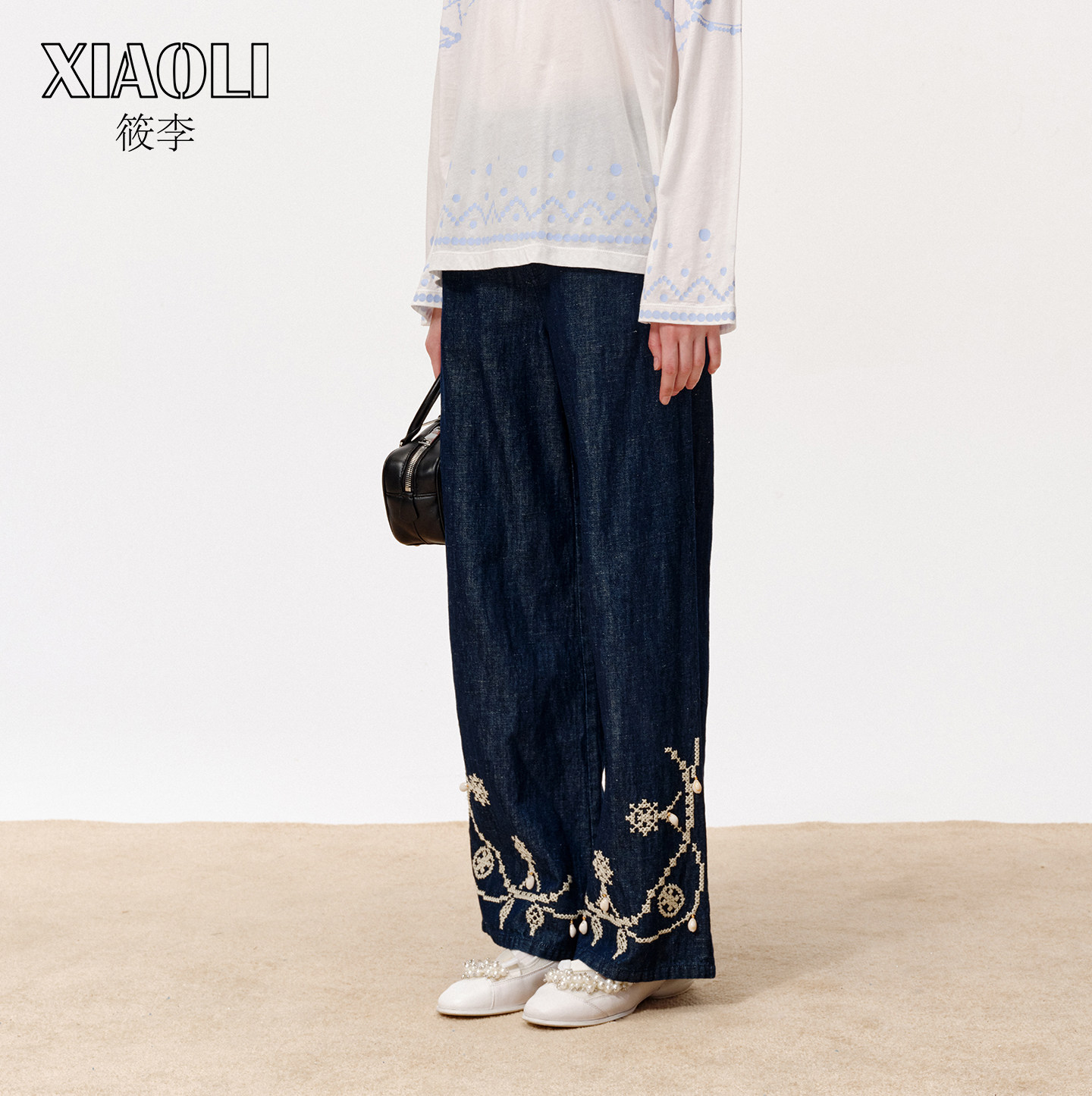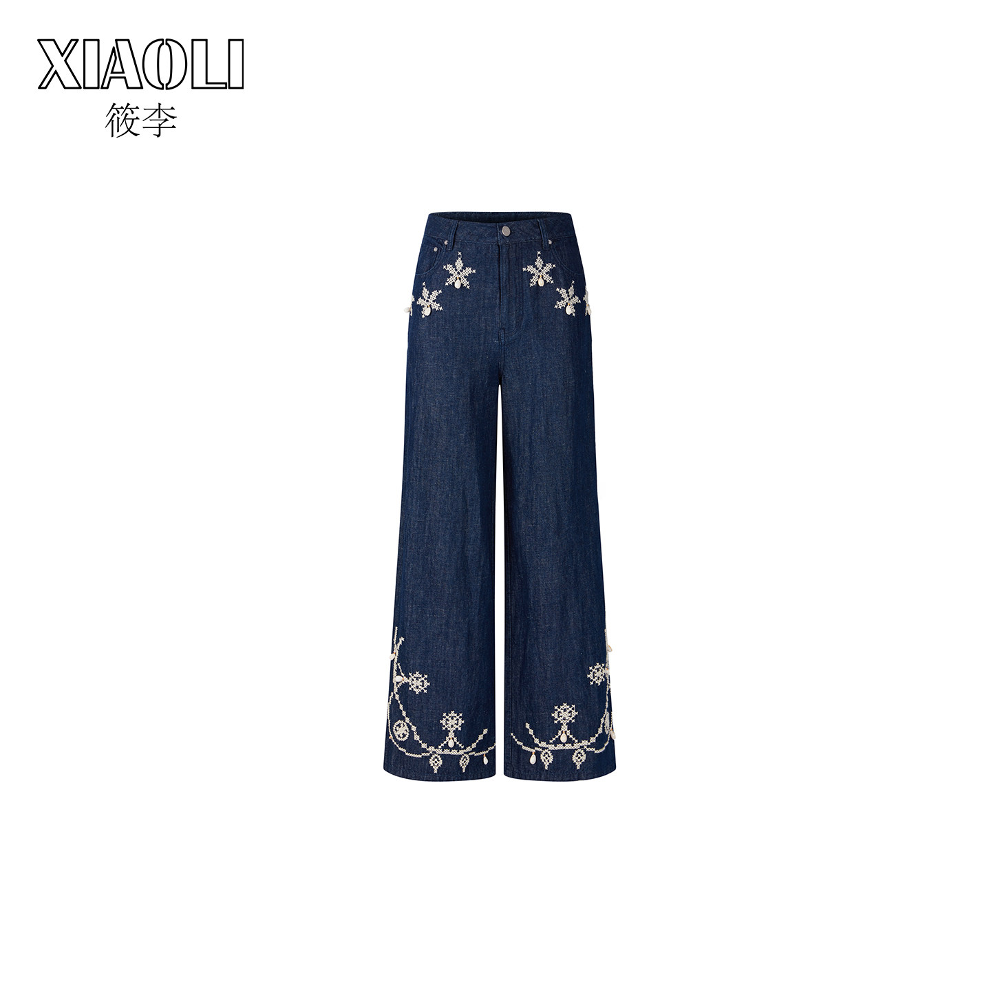 【XIAOLI筱李】立体美式休闲直筒蓝色十字绣牛仔长裤女春新品