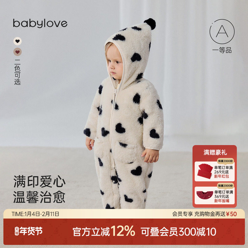 babylove宝宝毛绒连体衣秋冬季舒棉绒婴儿保暖哈衣爬服连帽外出服