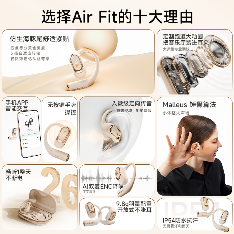 西伯利亚羽Air Fit挂耳式蓝牙耳机无线气骨传导开放式不入耳运动