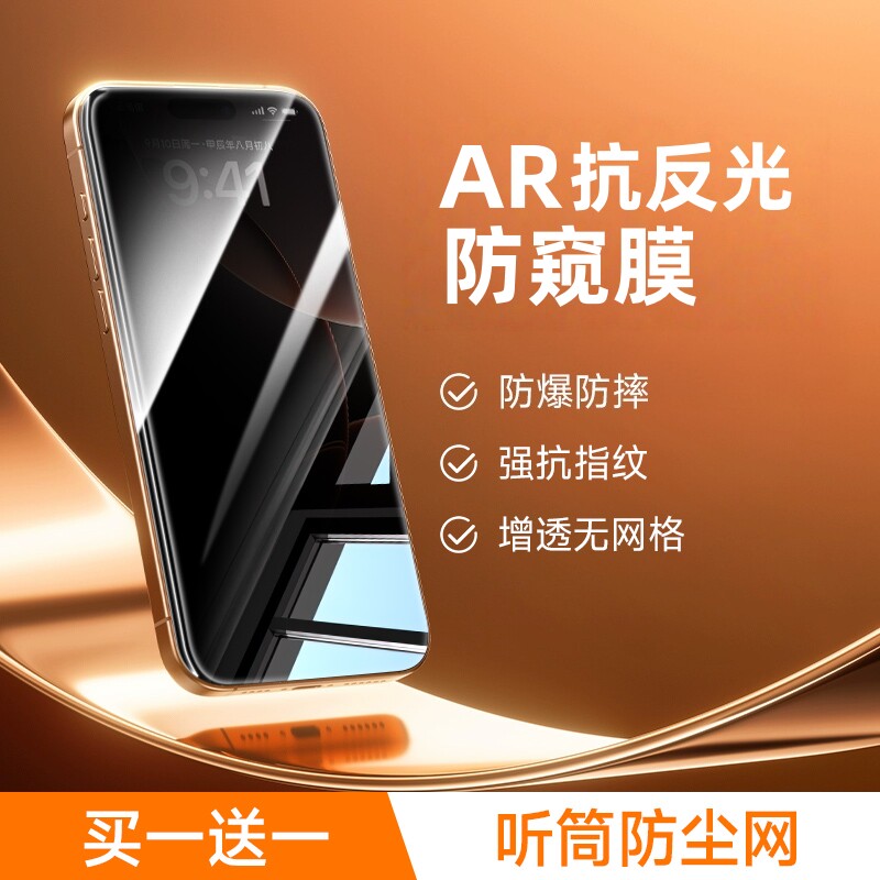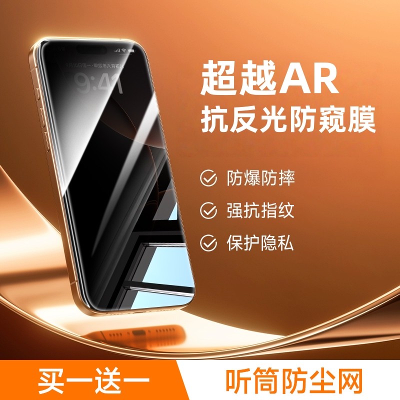 倍思无色防窥膜适用苹果iPhone17ProMax钢化膜16Pro无尘仓ip15手机贴膜AR抗反射360°防偷窥14防摔Air保护13