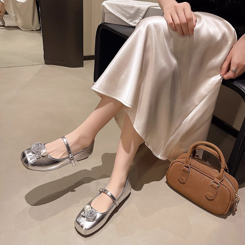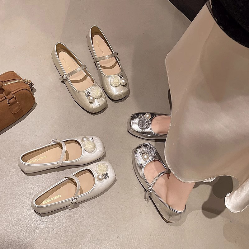 内增高法式裸色尖头单鞋女2025新款名媛千金平底浅口气质玛丽珍鞋