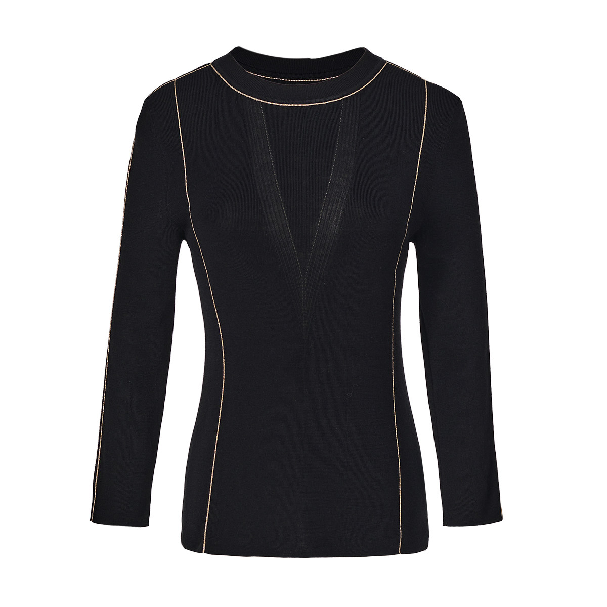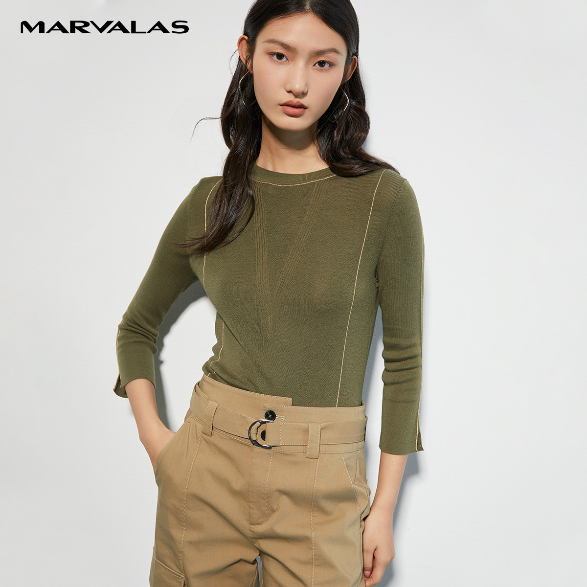 三福长袖上衣2025新款秋季圆领修身针织衫简约纯色内搭打底衫女装
