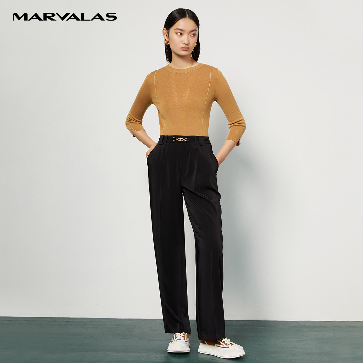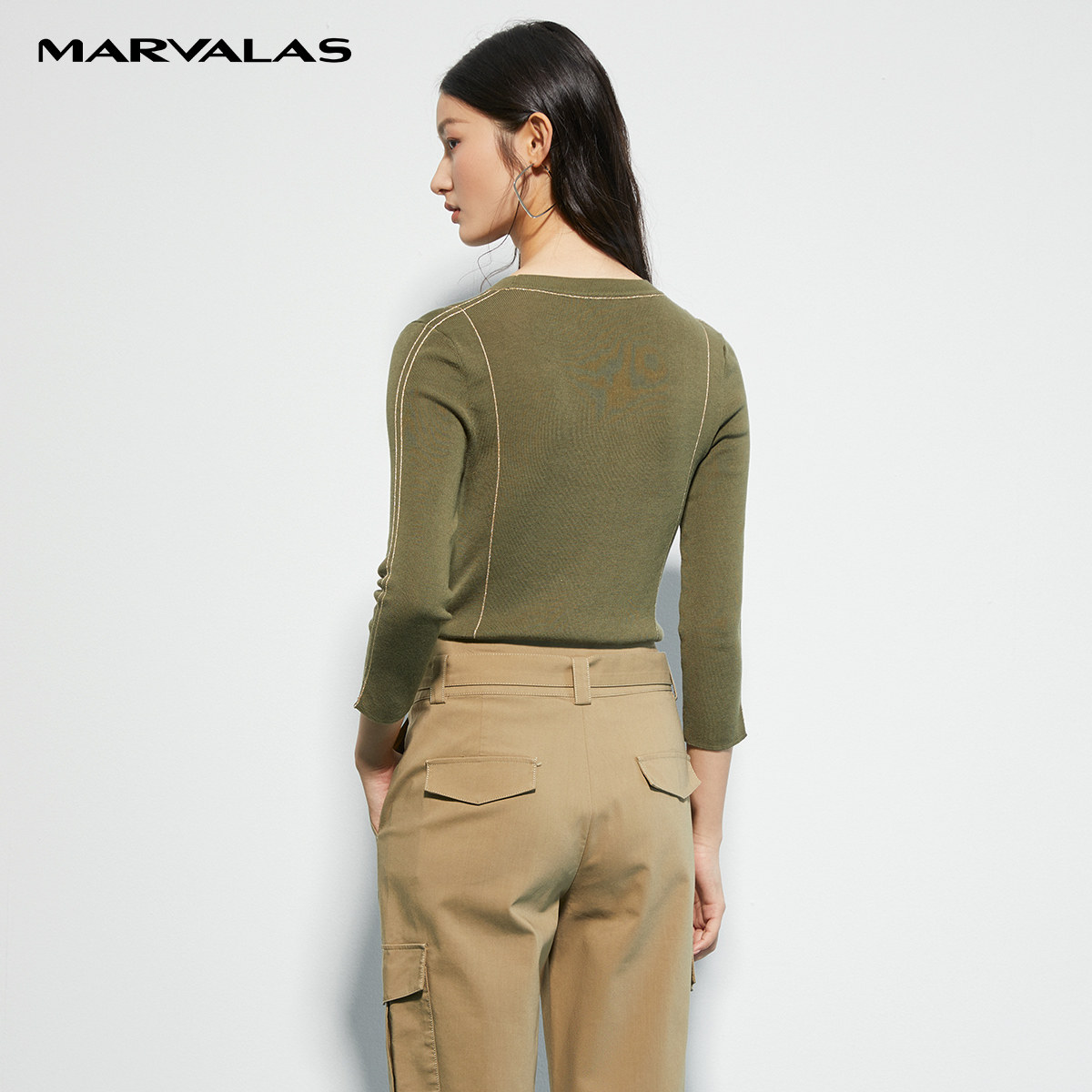 曼德诗套头短款毛衫2025秋季新款撞色圆领简约显瘦设计感针织打衫