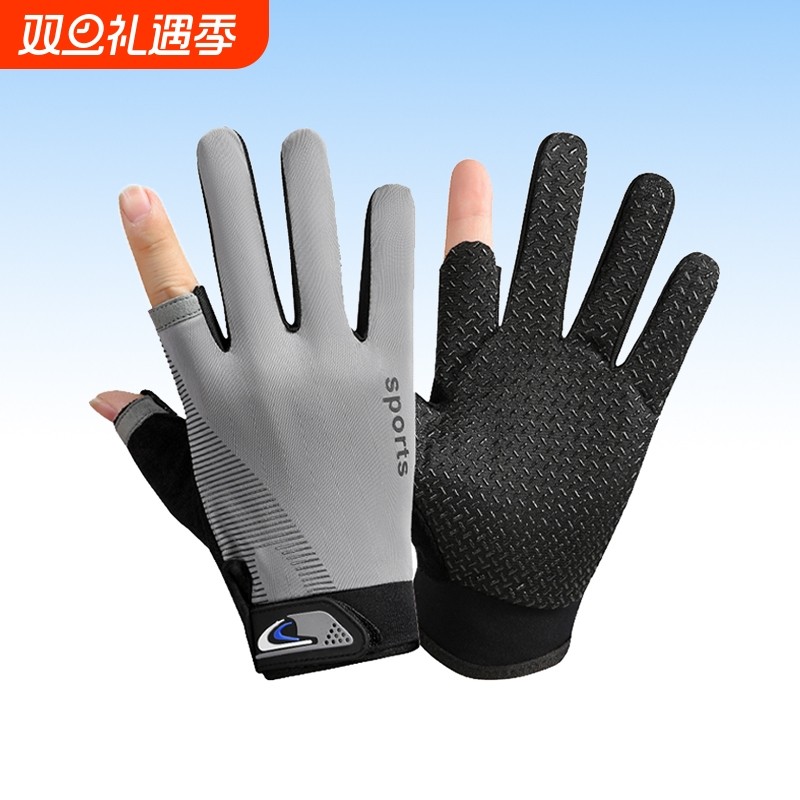 防晒手套男夏季薄防滑冰丝开车骑行路亚钓鱼漏二指半指女登山耐磨