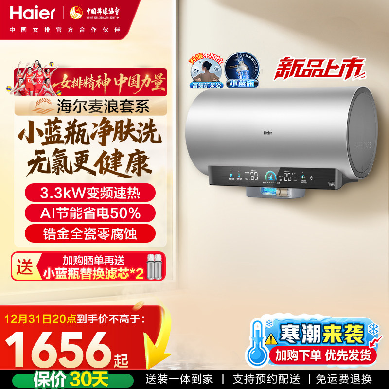 海尔麦浪电热水器官方家用卫生间洗澡60升一级能效节能小蓝瓶DR7