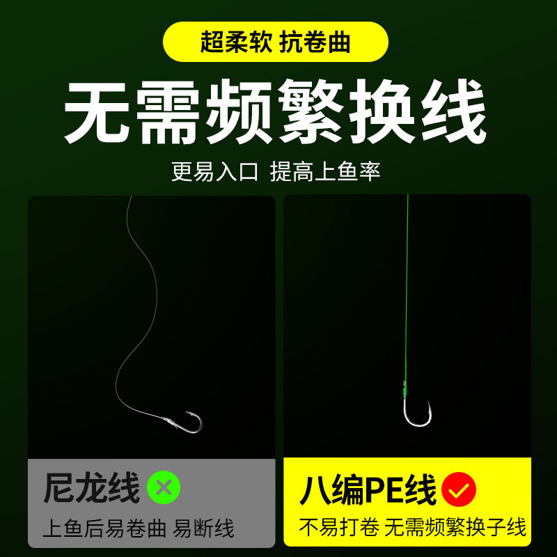 大力马子线双钩pe线绑好成品金袖鱼线鱼钩野钓无刺高碳钢手工防咬