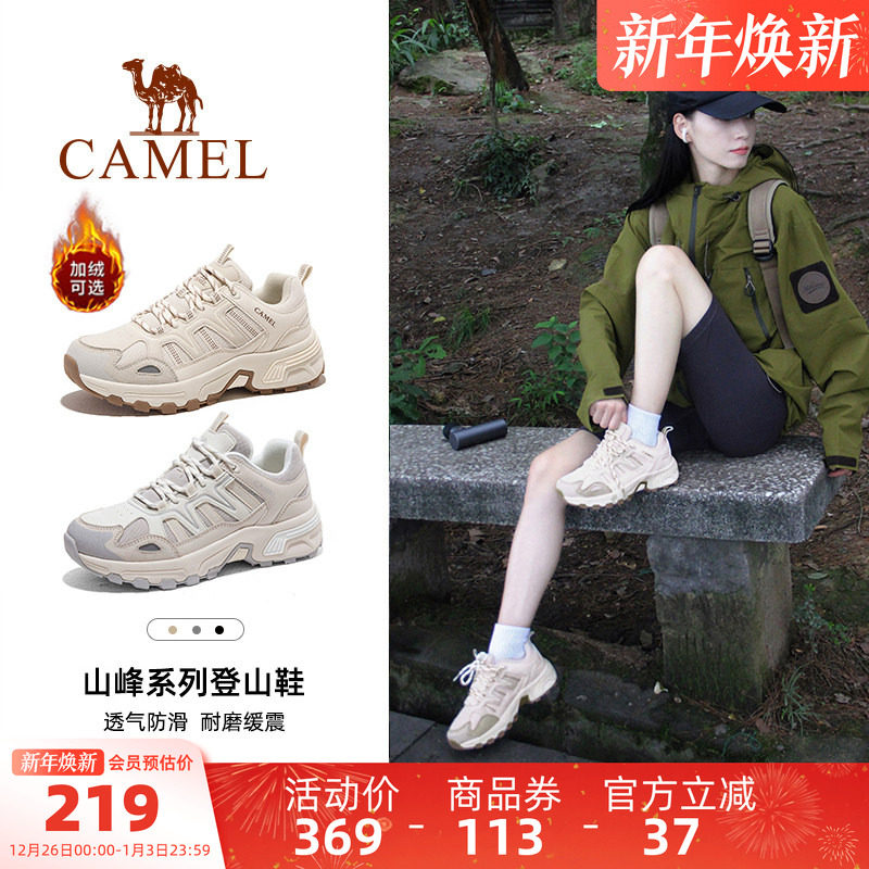 骆驼登山鞋女士户外鞋防滑秋冬加绒运动爬山专业徒步鞋缓震男鞋子