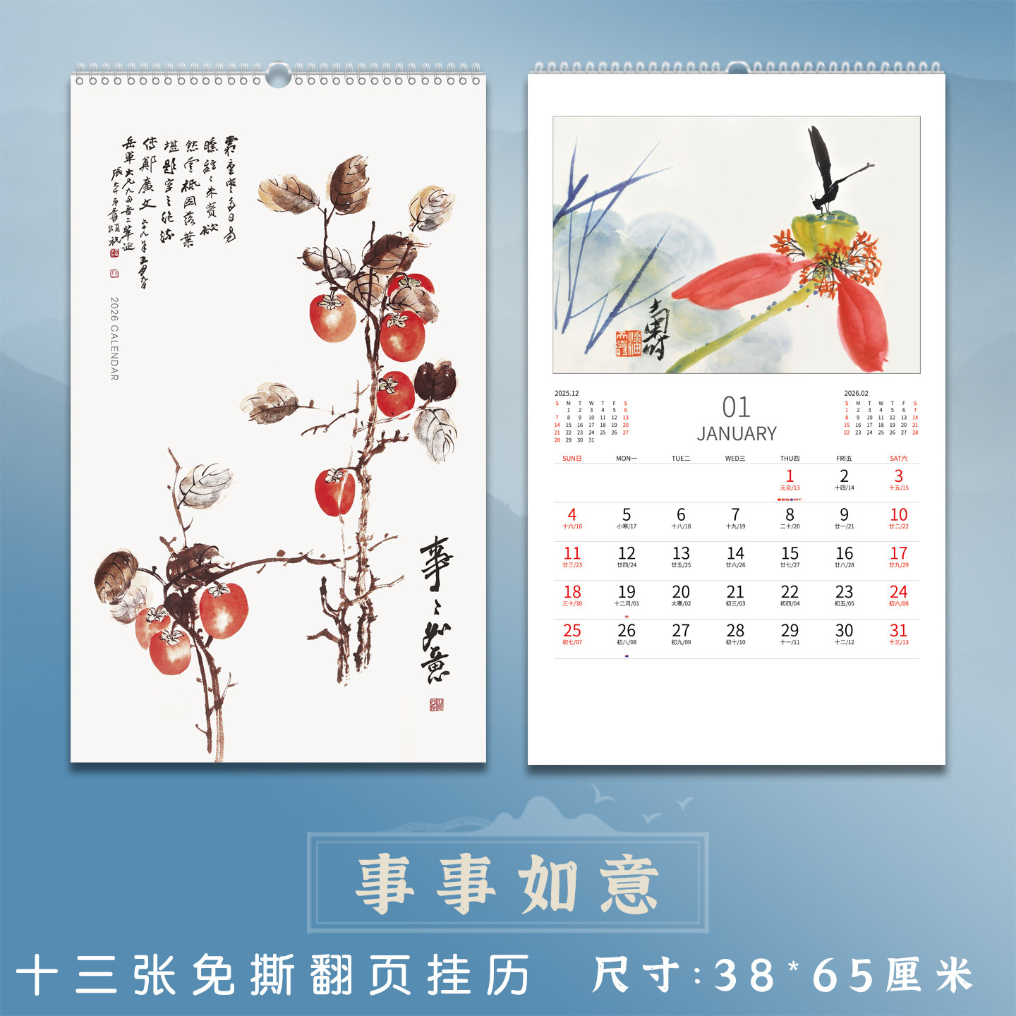2026挂历新款马年定制家用挂墙山水挂历油墨画风景免撕十三张新款创意月历大号日历公司礼品批发广告印刷订做
