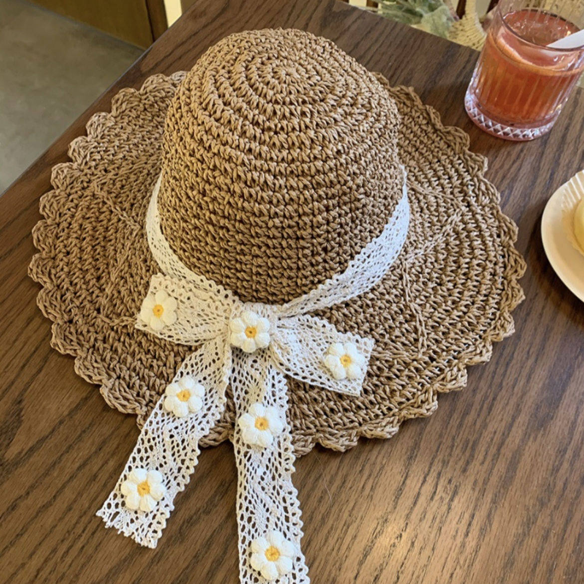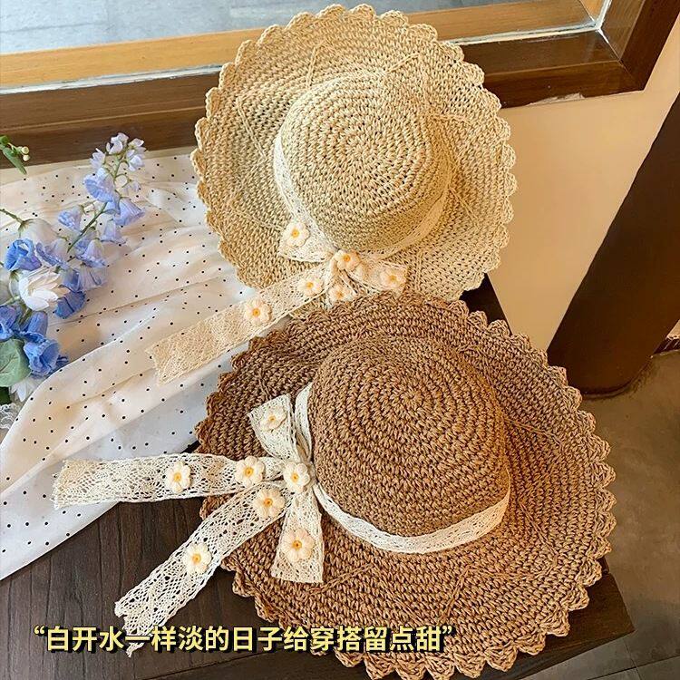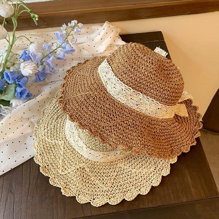 2025网红镂空蕾丝草编防晒帽子女夏季户外海边沙滩遮阳太阳帽草帽