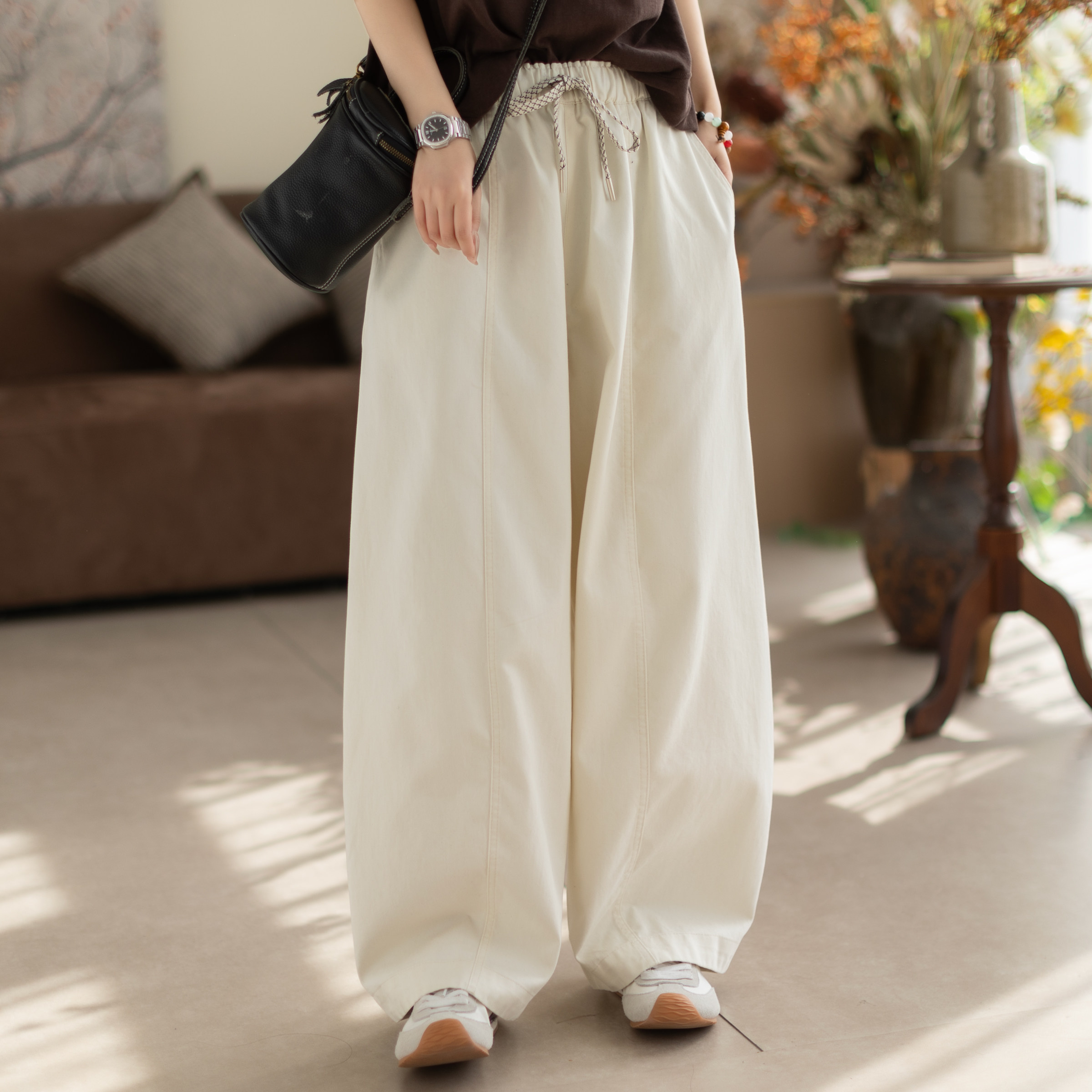 咖咪羽休闲直筒裤纯棉宽松百搭简约系带通勤纯色显瘦休闲长裤女