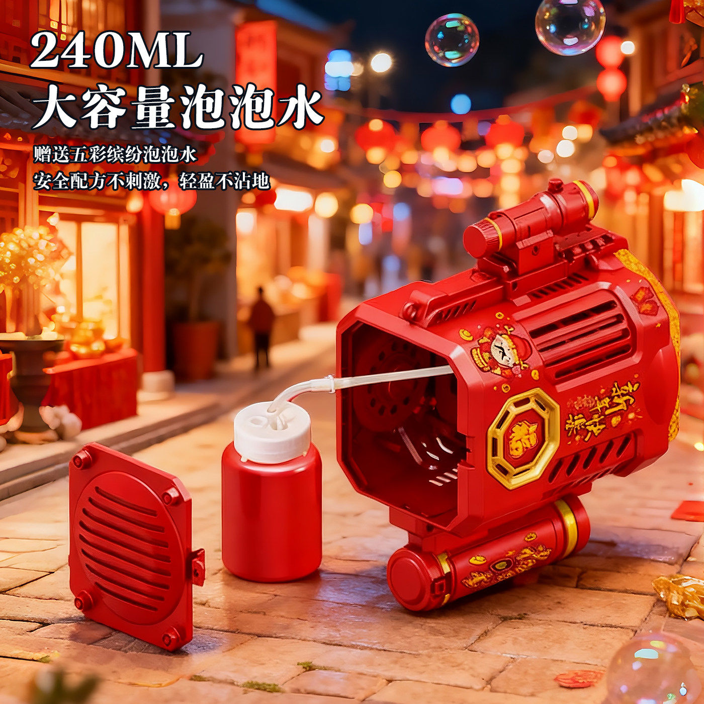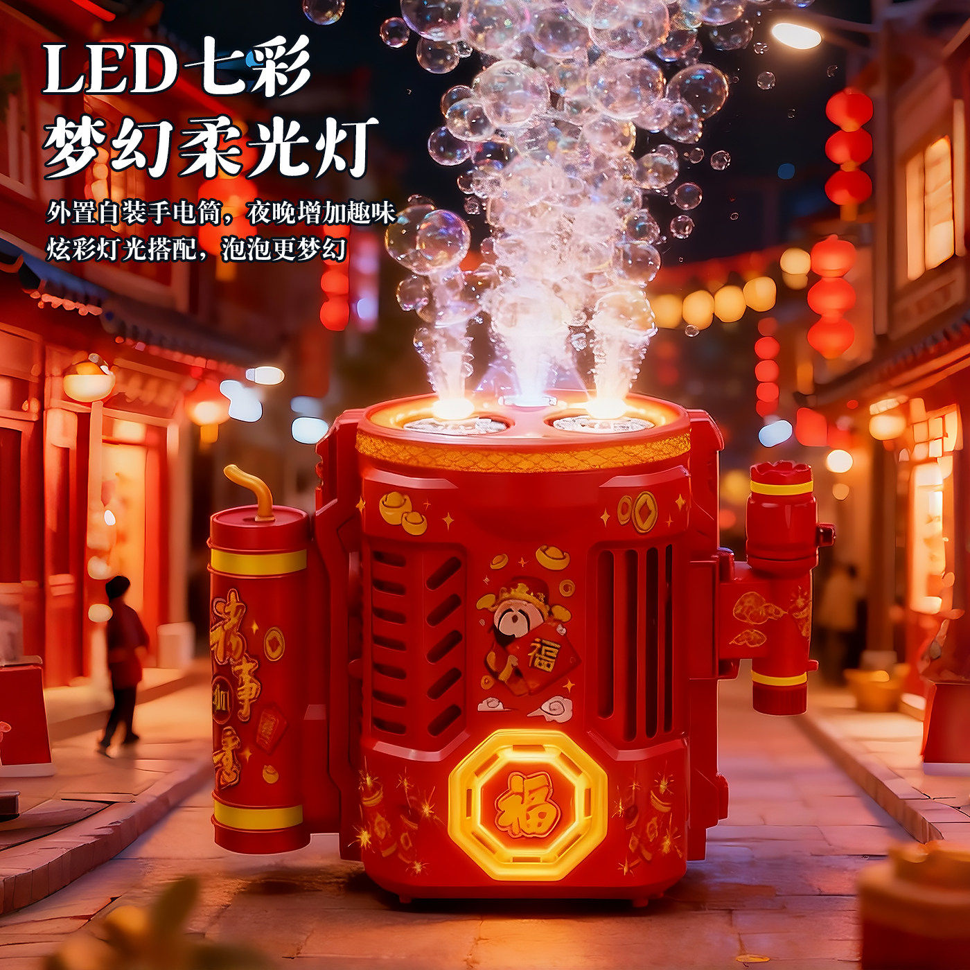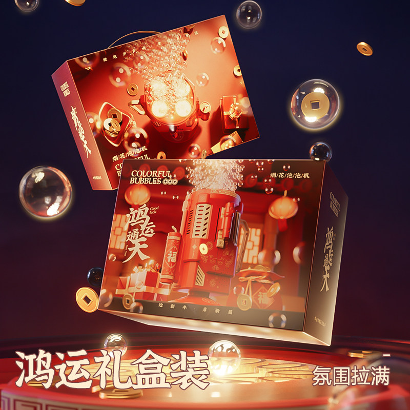 乐乐鱼2026新款电动新年烟花泡泡机醒舞狮灯笼儿童玩具手持加特林