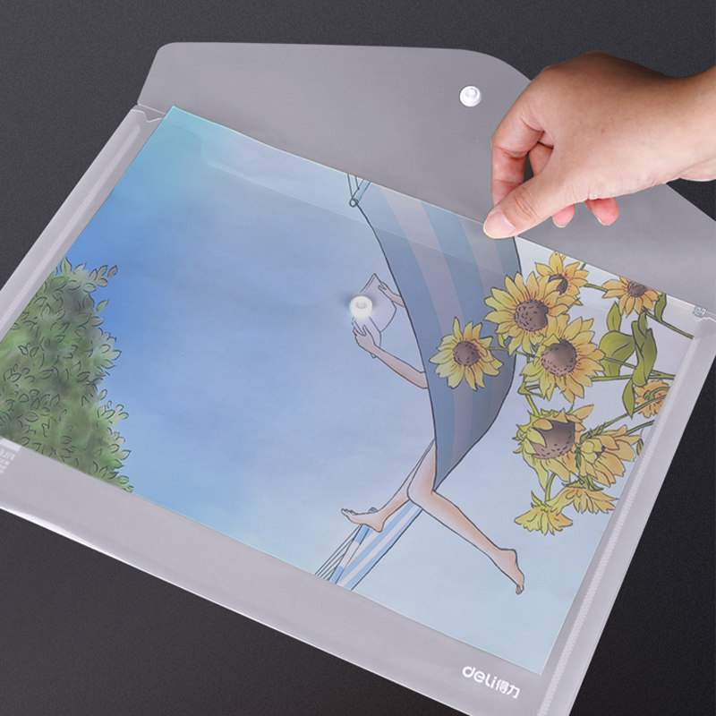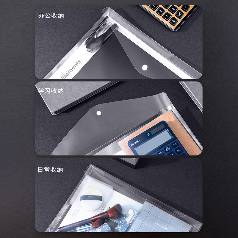 得力文件袋透明A4文件夹高颜值按扣学生试卷资料票据补习袋美术袋办公用品档案手提包加厚防水考试专用袋子