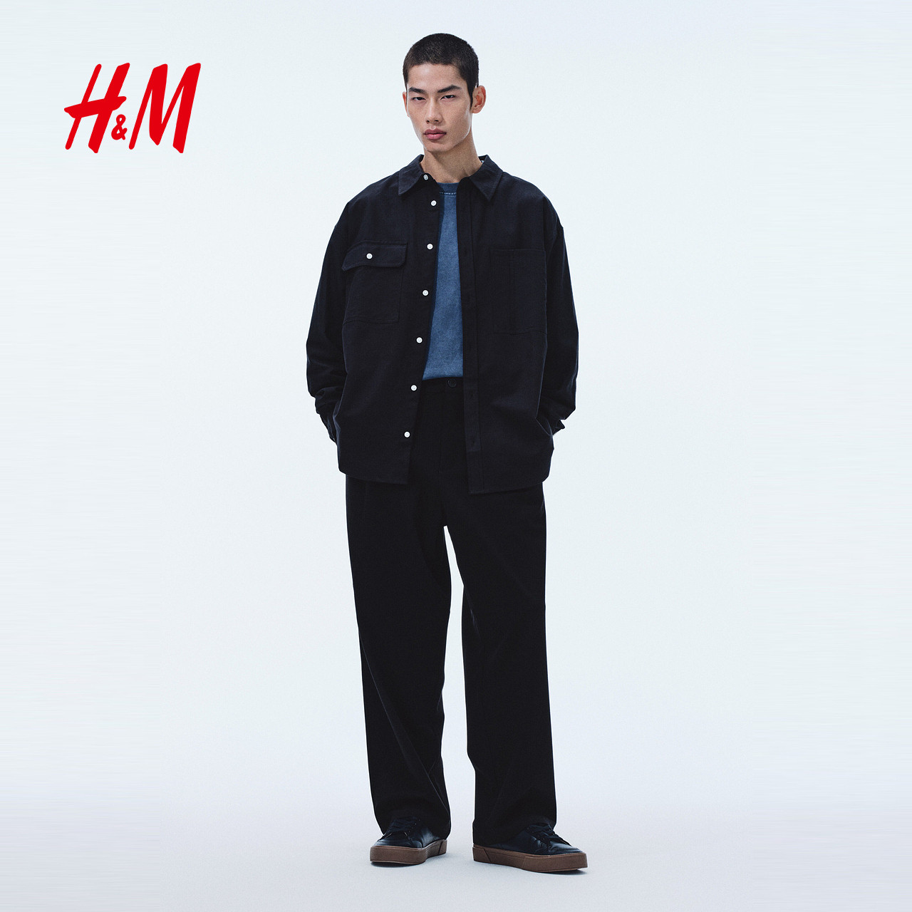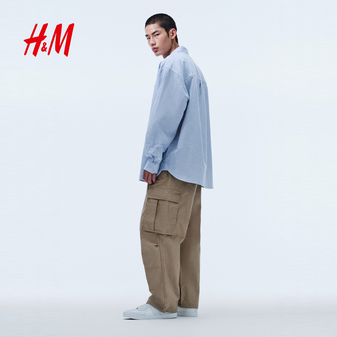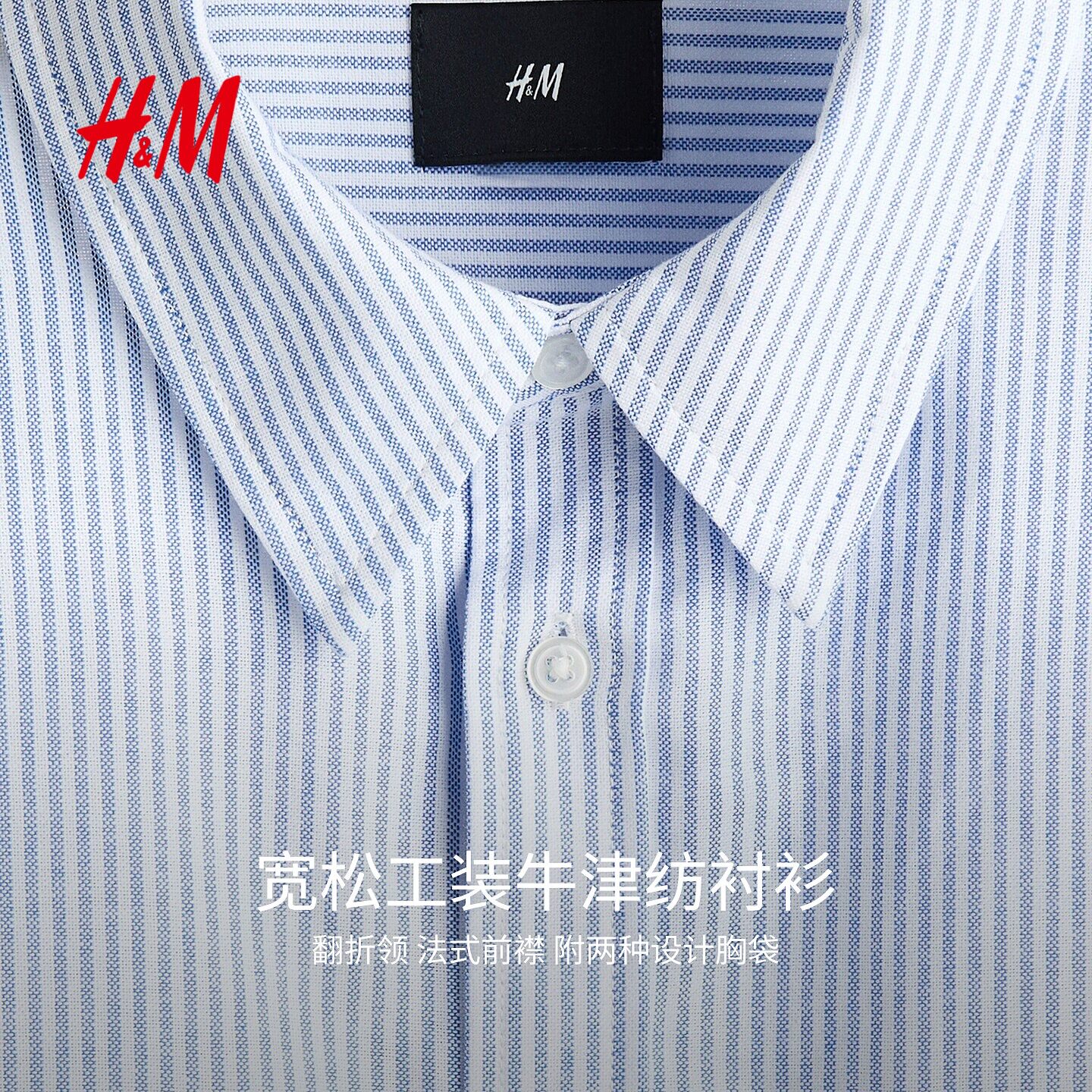 【侯明昊同款】HM男装衬衫春季通勤宽松工装牛津纺衬衣1307965