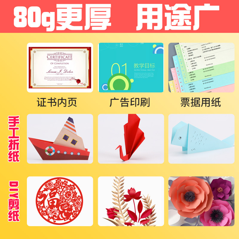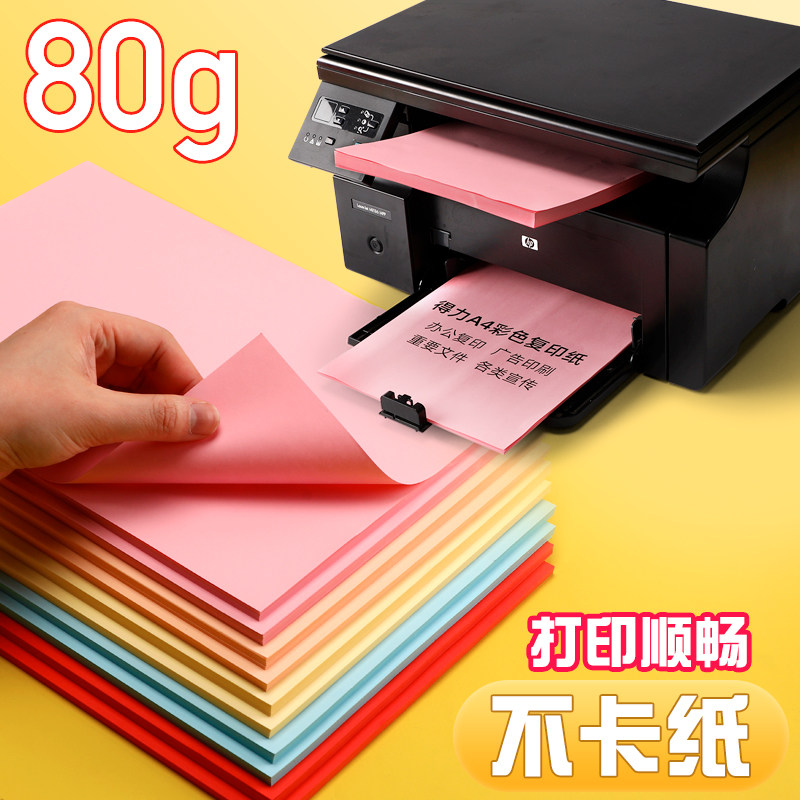 得力彩色a4纸打印纸加厚80g复印纸a4彩纸学生儿童手工折纸100张单包办公用纸混色装红色粉色黄色绿色白纸包邮