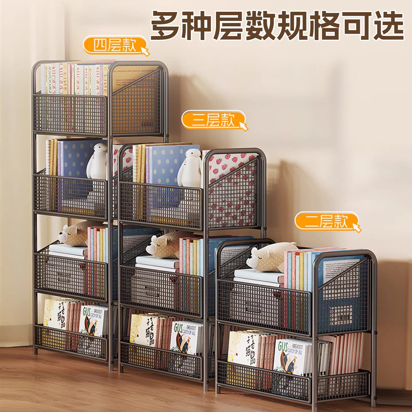 钢制图书馆书架家用落地置物架儿童书柜客厅绘本架简易铁艺储物架