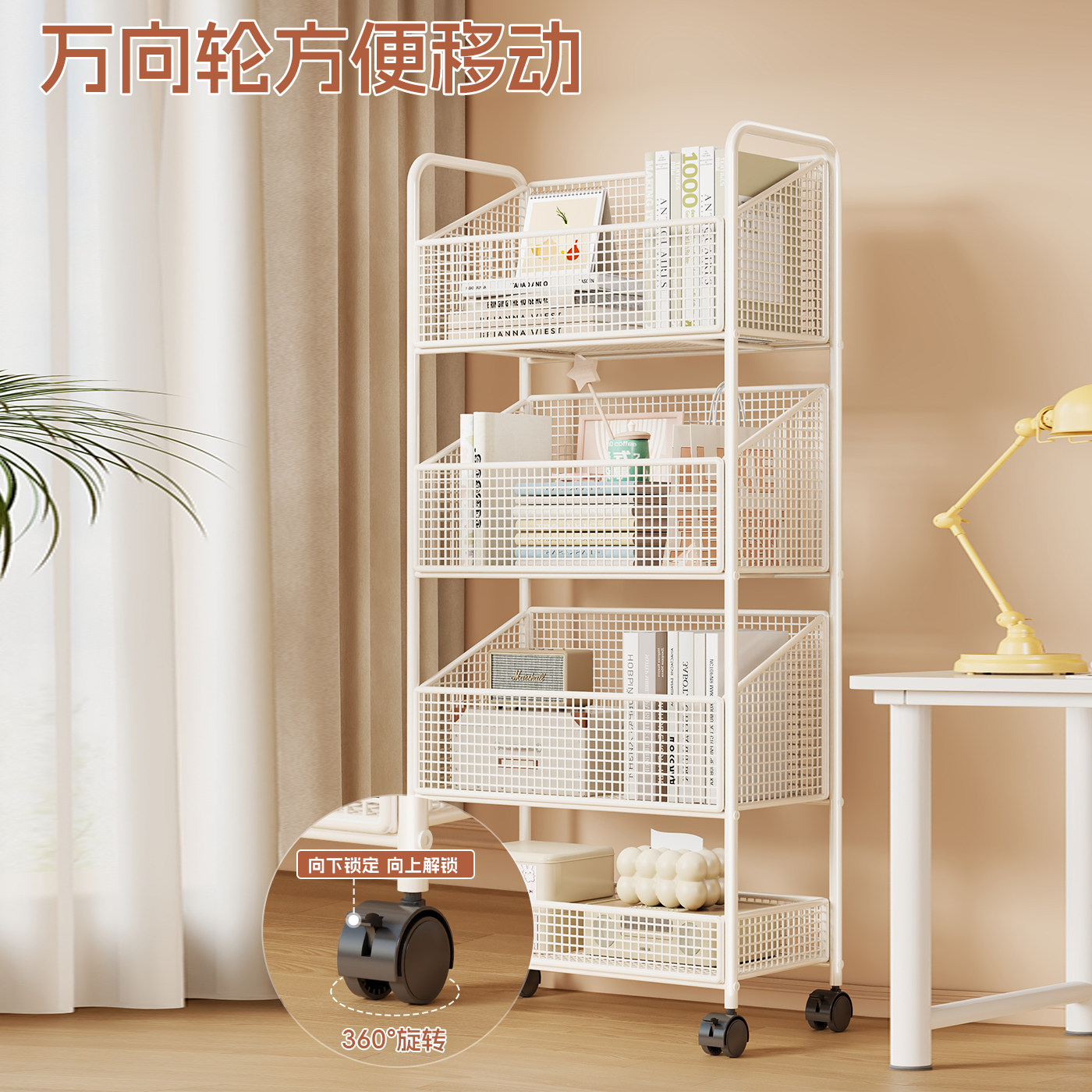 宿舍书架置物架简易书本收纳柜落地桌边多层家用可移动带轮小推车