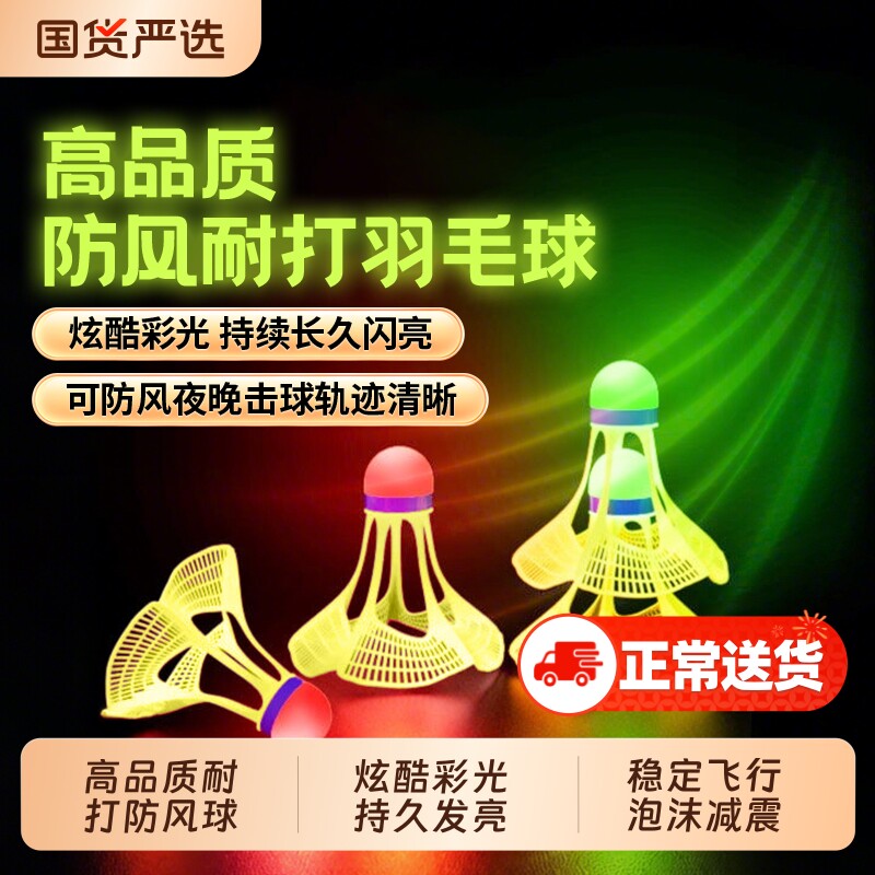 发光尼龙羽毛球夜光荧光发亮夜间亮灯羽毛球正品防风耐打室外室内