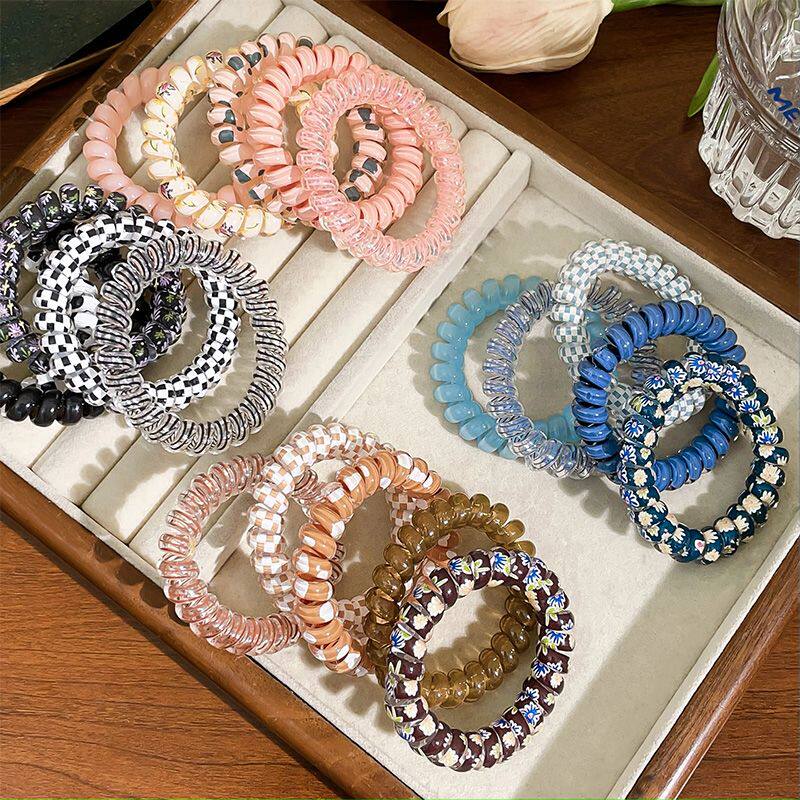 高弹力耐用电话线发圈女扎头发彩色时尚绑头发皮筋头绳简约绳发饰
