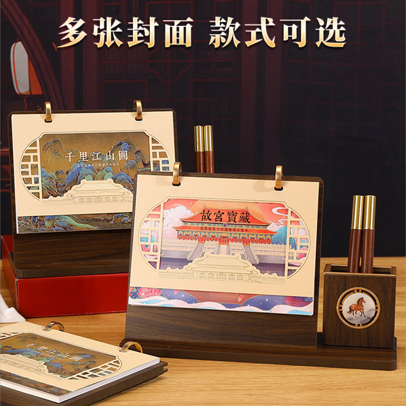 台历定制2026年马年新款创意木质桌面摆件订制办公室记事月历礼盒装自律打卡计划本印刷商务日历公司定做logo