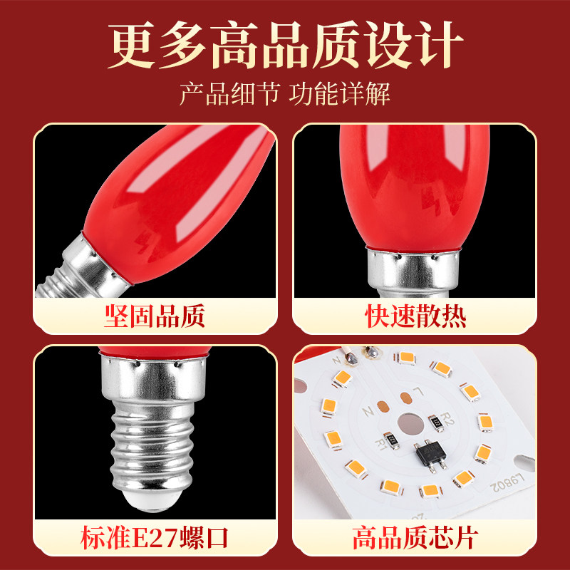 红灯泡e27螺口led灯家用大红灯笼灯红色小灯泡超亮节能球泡灯照明