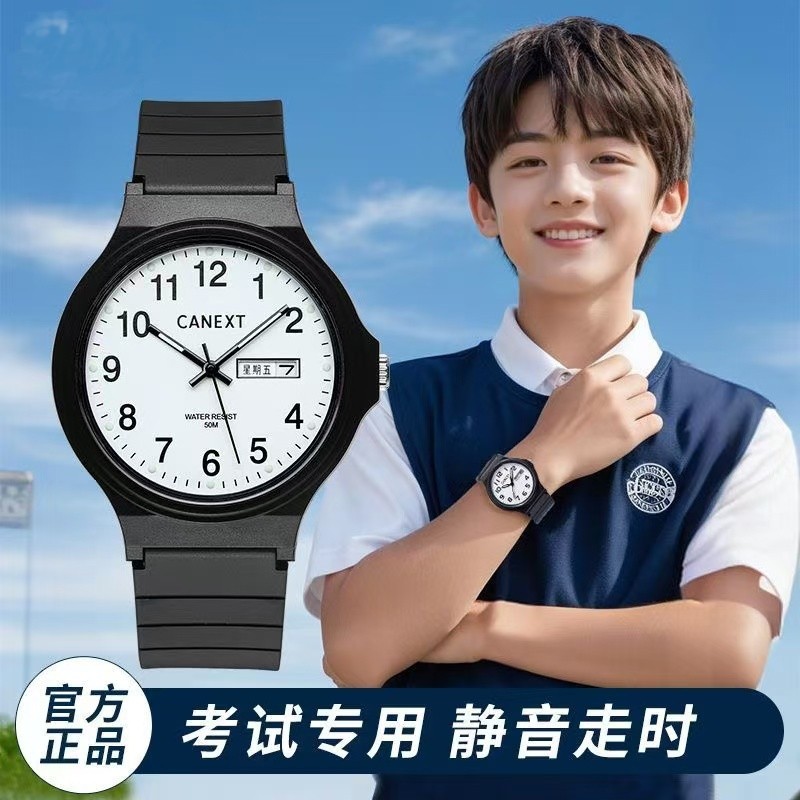 静音学霸考试专用手表男女初高中学生简约防水夜光儿童机械石英表