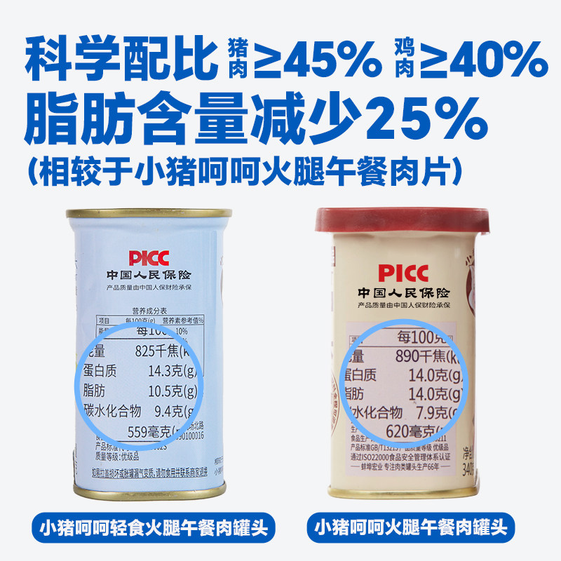 (小猪呵呵轻食火腿午餐肉罐头肉含量85%沙拉泡面三明治火锅即食
