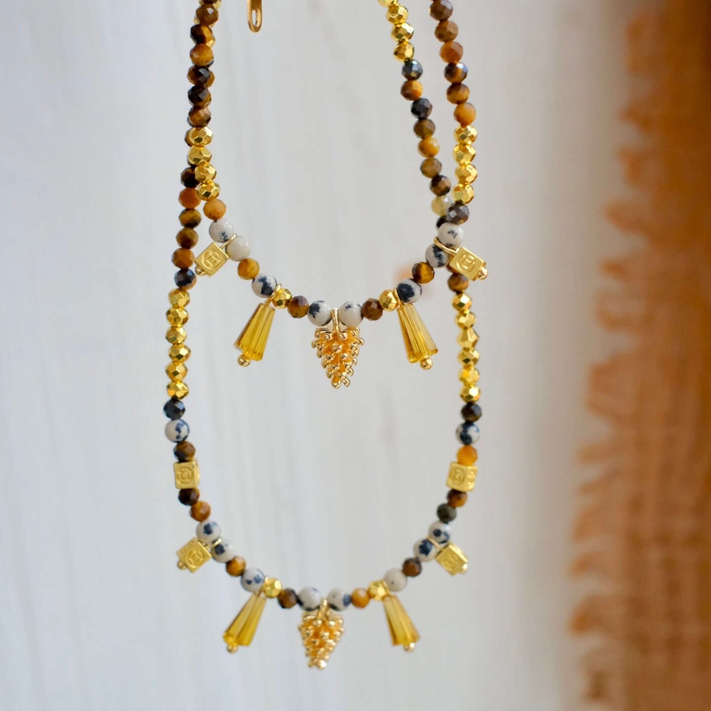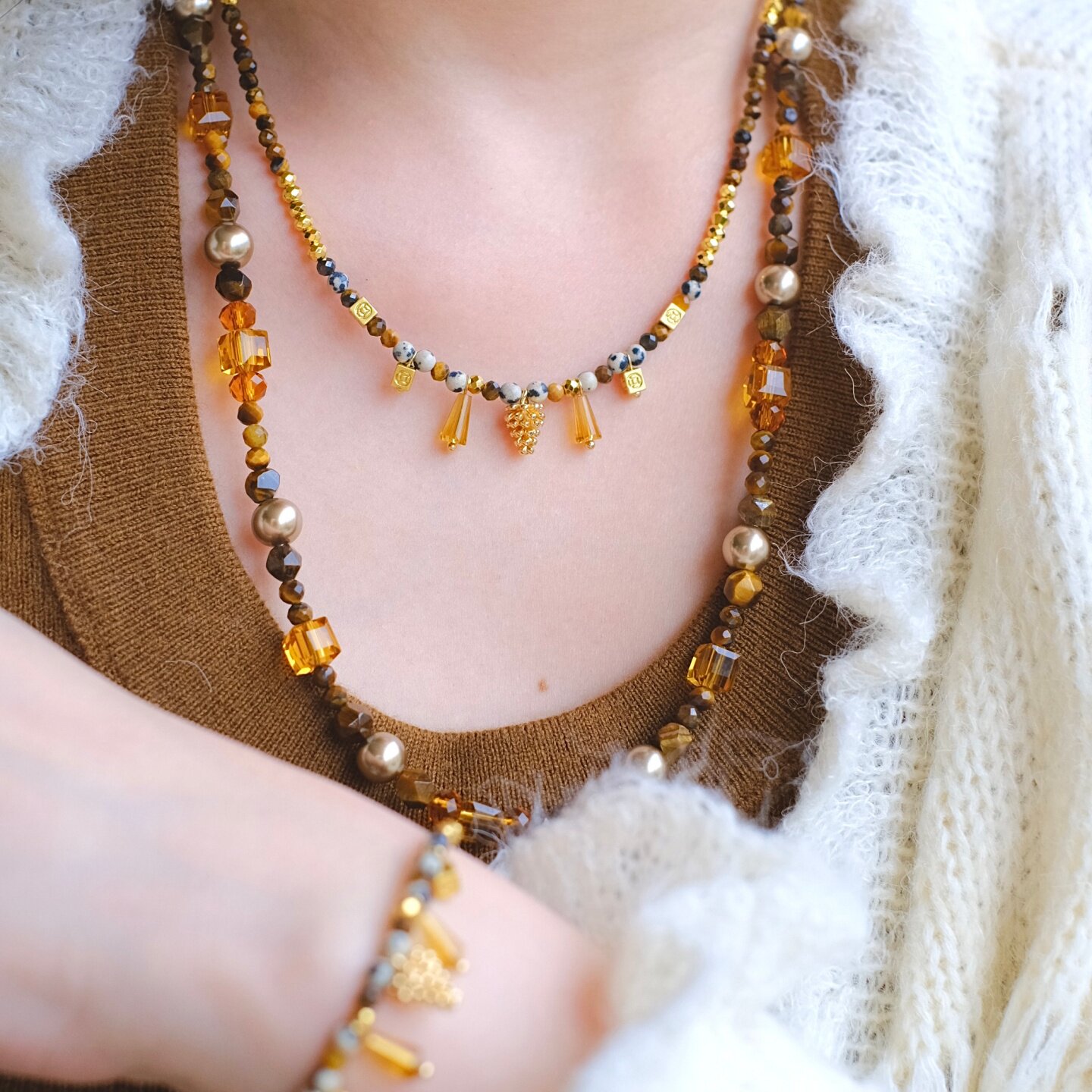 《林深不知处》原创秋冬美拉德天然虎眼石串珠流苏项链手链锁骨链