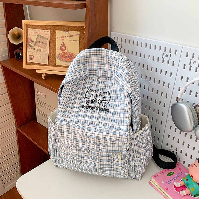 日系文艺格子书包女原宿风大容量初高中学生校园背包大学生双肩包