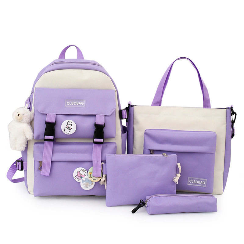 新款帆布中学生书包女韩版原宿大容量四件套高中学生双肩包可