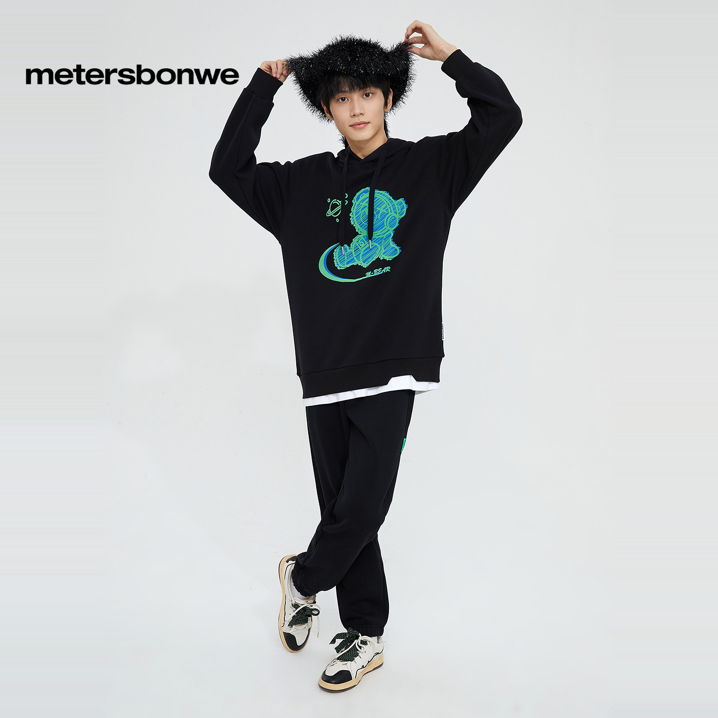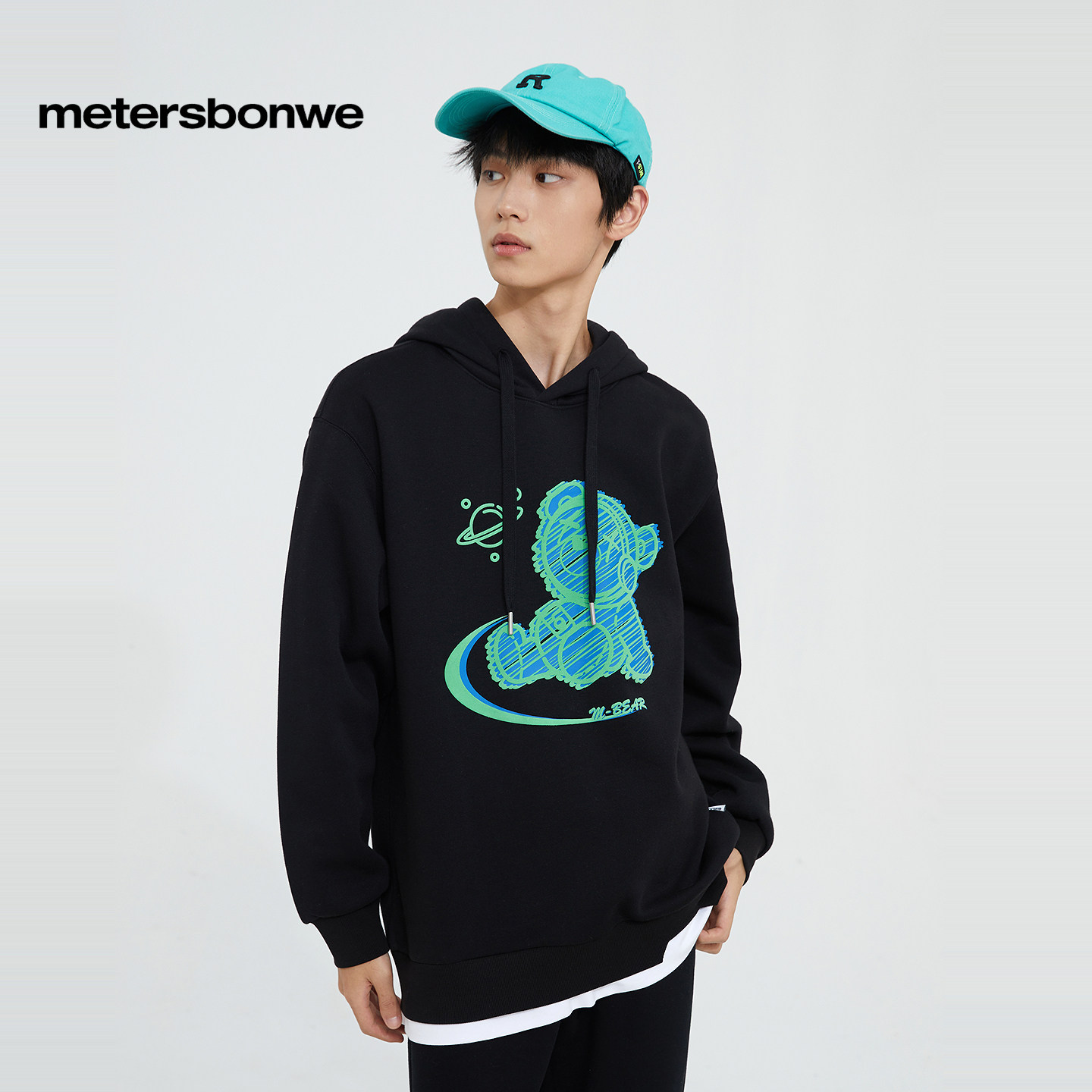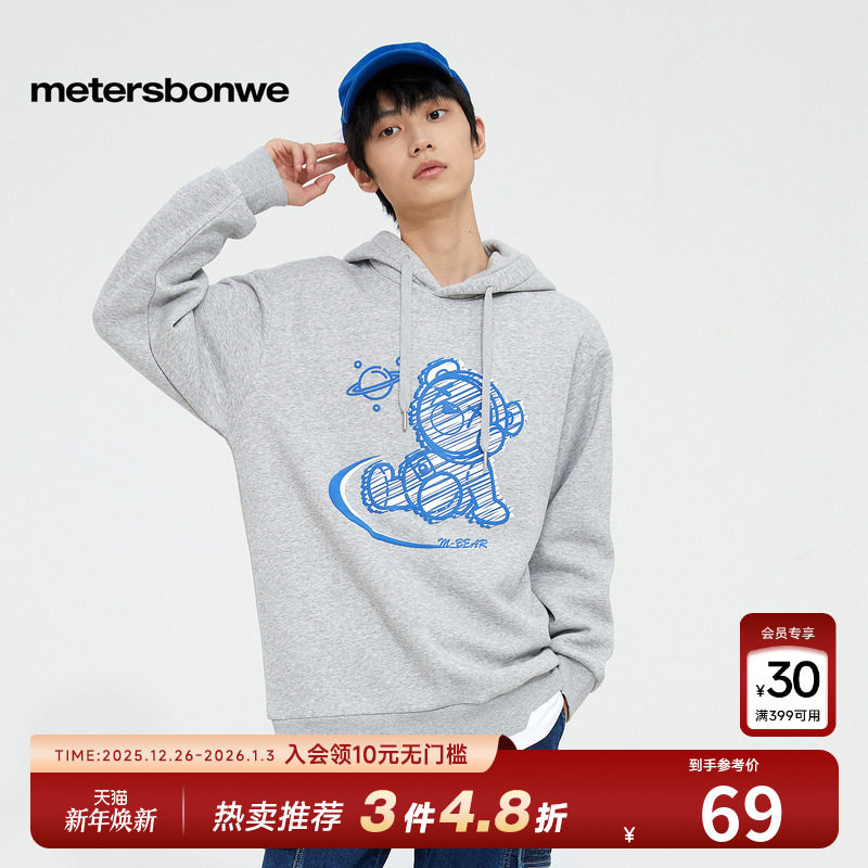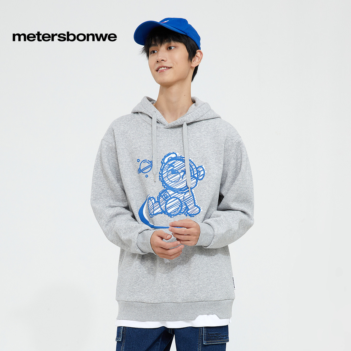 美特斯邦威卫衣男秋冬假两件连帽舒适前胸小熊印花潮流时尚针织衫