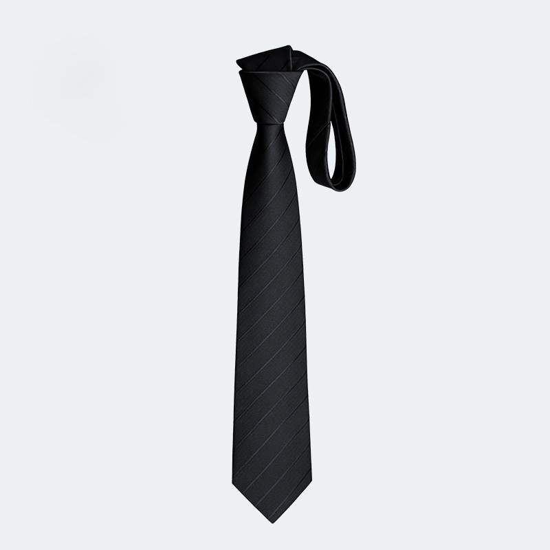 新款男士领带8CM结婚新郎商务正装黑色条纹手打拉链西服衬衫休闲