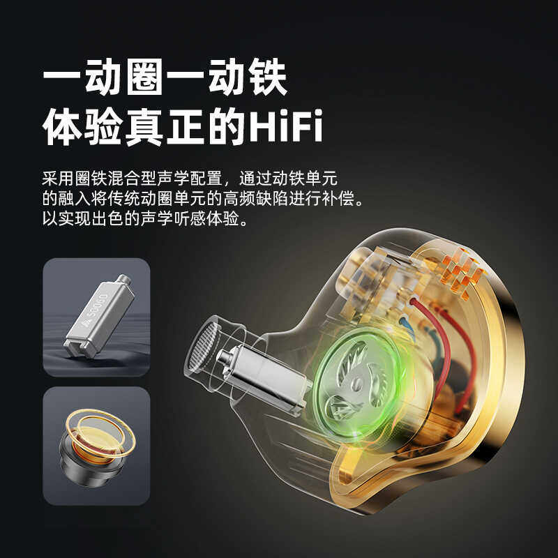 圈铁入耳式立体声高音质监听耳机有线动铁发烧级HiFi耳机音乐耳塞