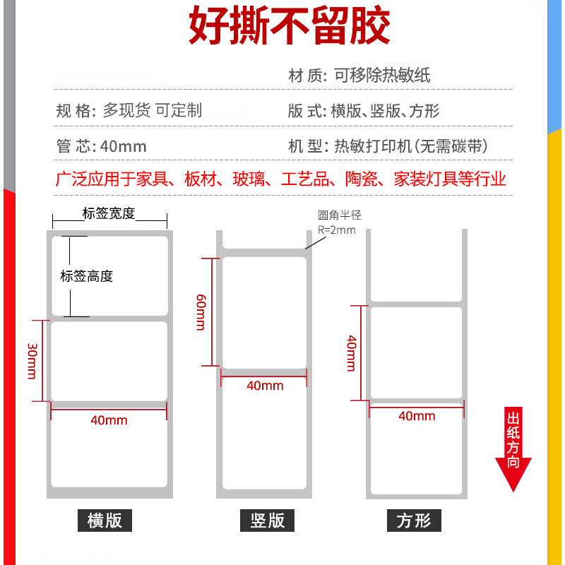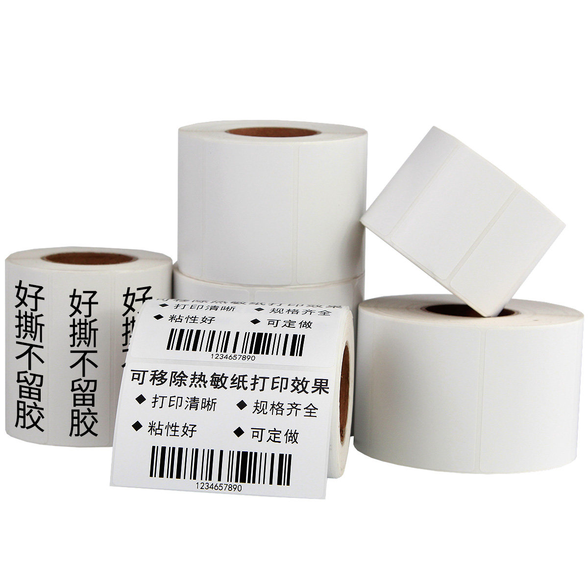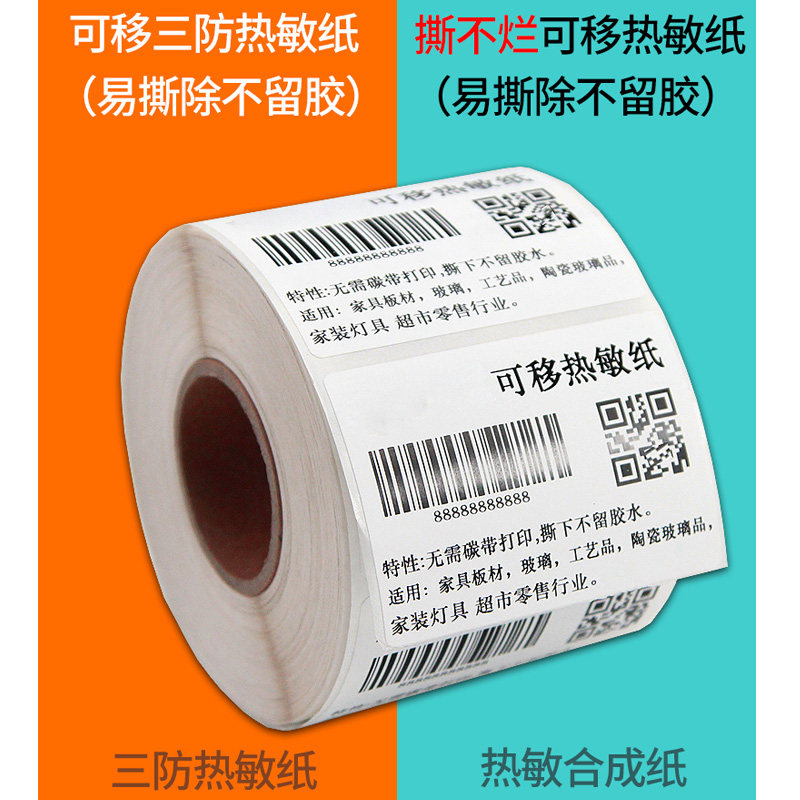 可移除标签纸三防热敏不干胶100*80 60X40 70*50X30 20不留胶贴纸条码打印机家具板材玻璃防水背胶易撕揭开