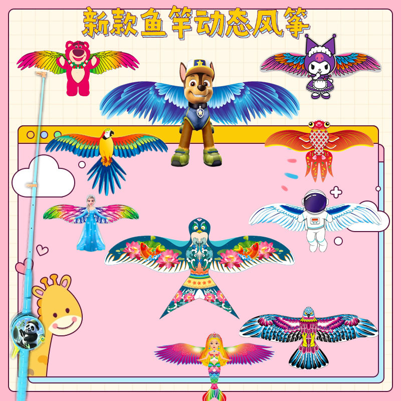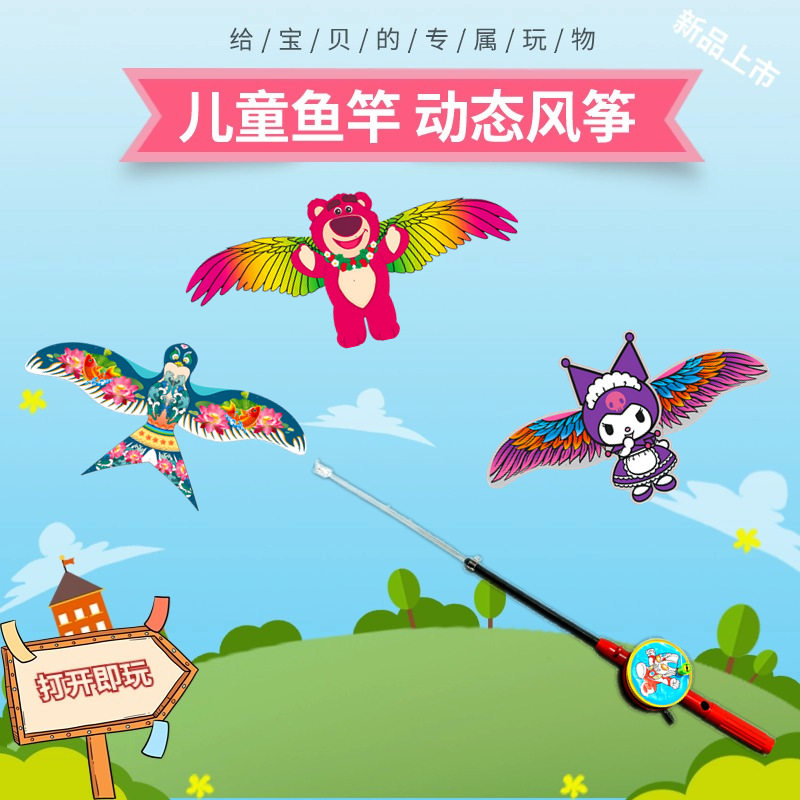 手持鱼竿动态风筝动态仿真振翅风筝广场地摊小风筝户外迷你风筝