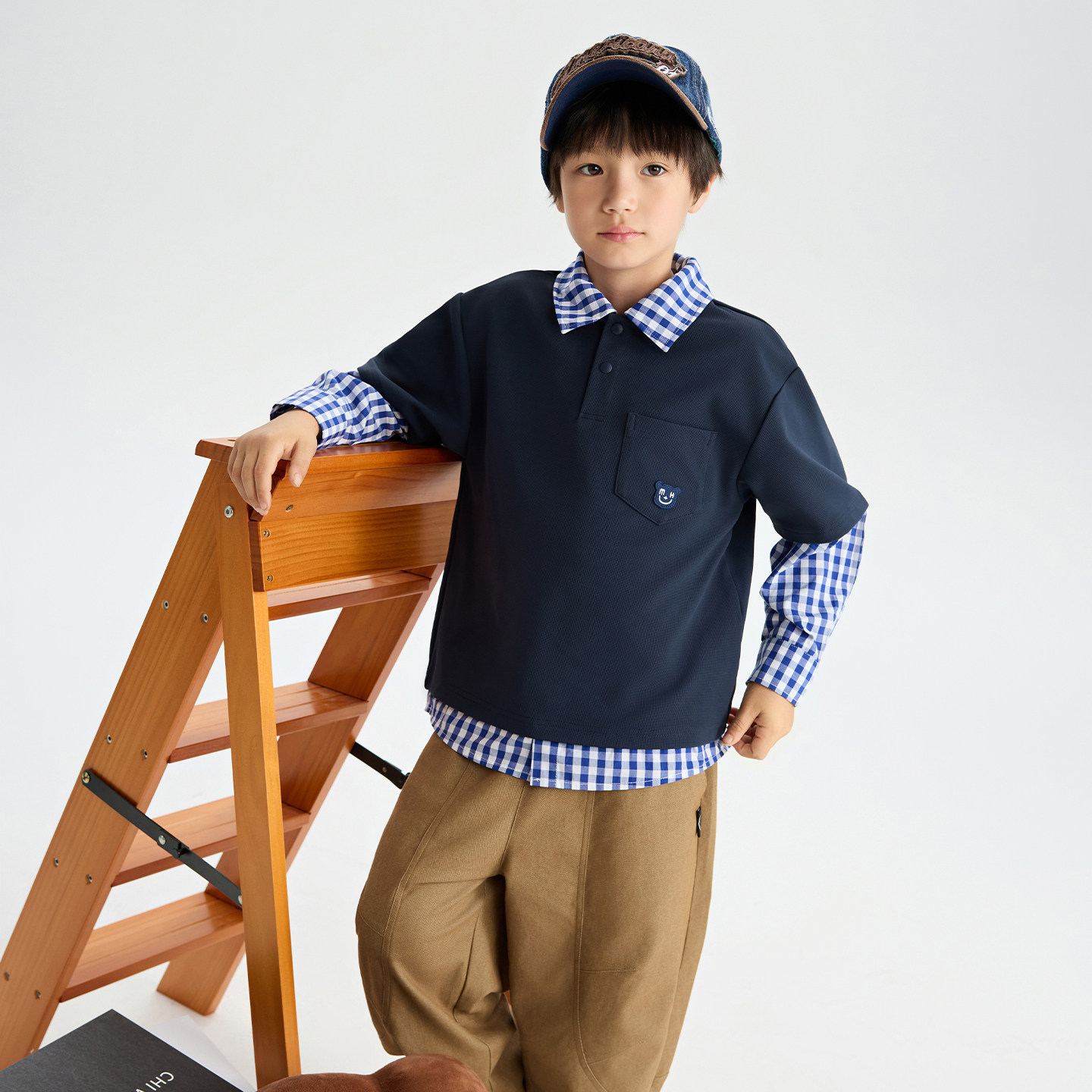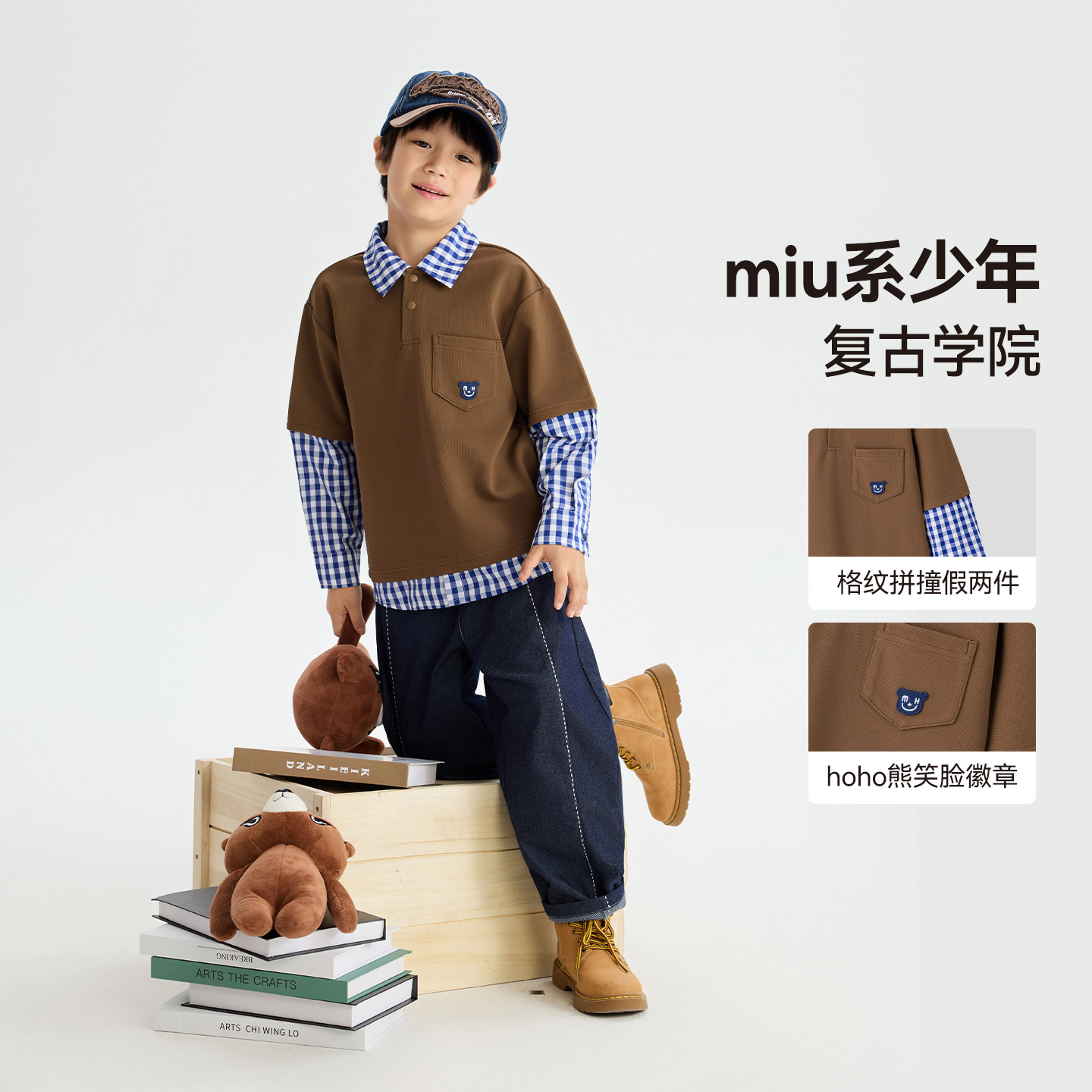 漫画家【氧气蓝卫衣】美式学院miu系复古休闲假两件华夫格卫衣