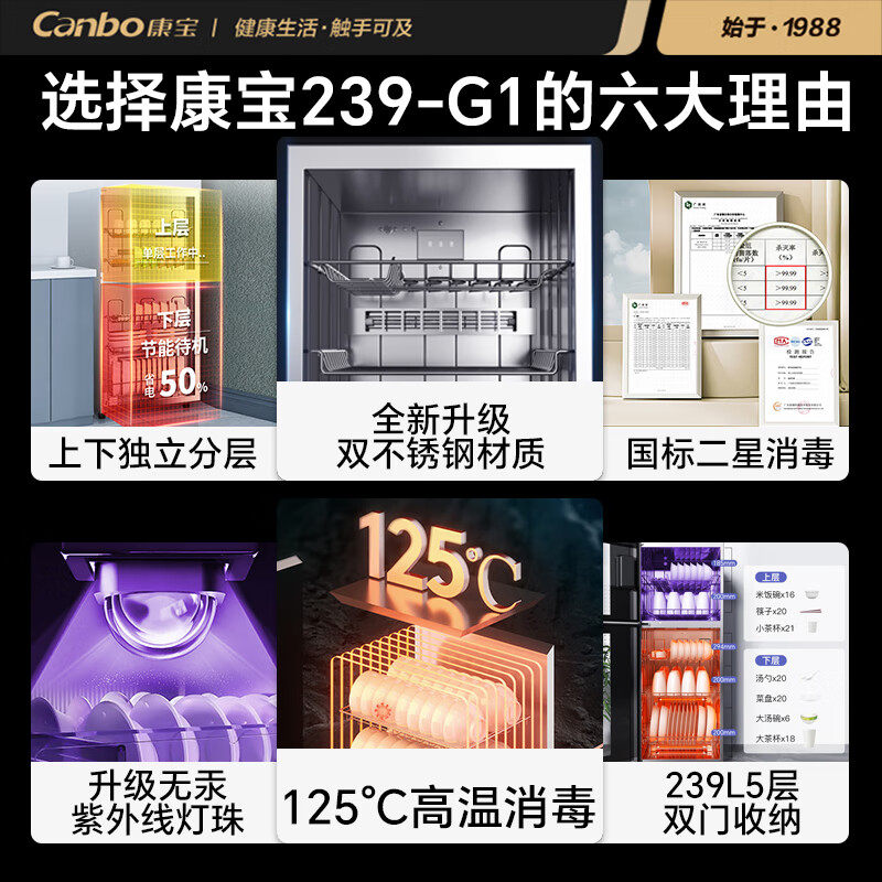 Canbo/康宝XDZ239-G1立式碗筷碗柜餐具柜商用二星级柜家用消毒柜