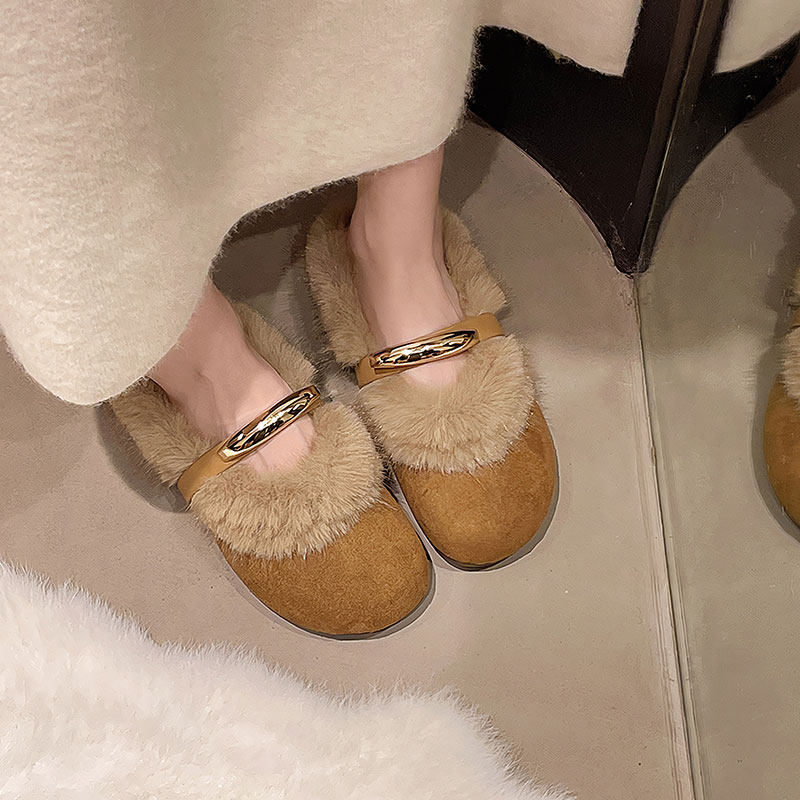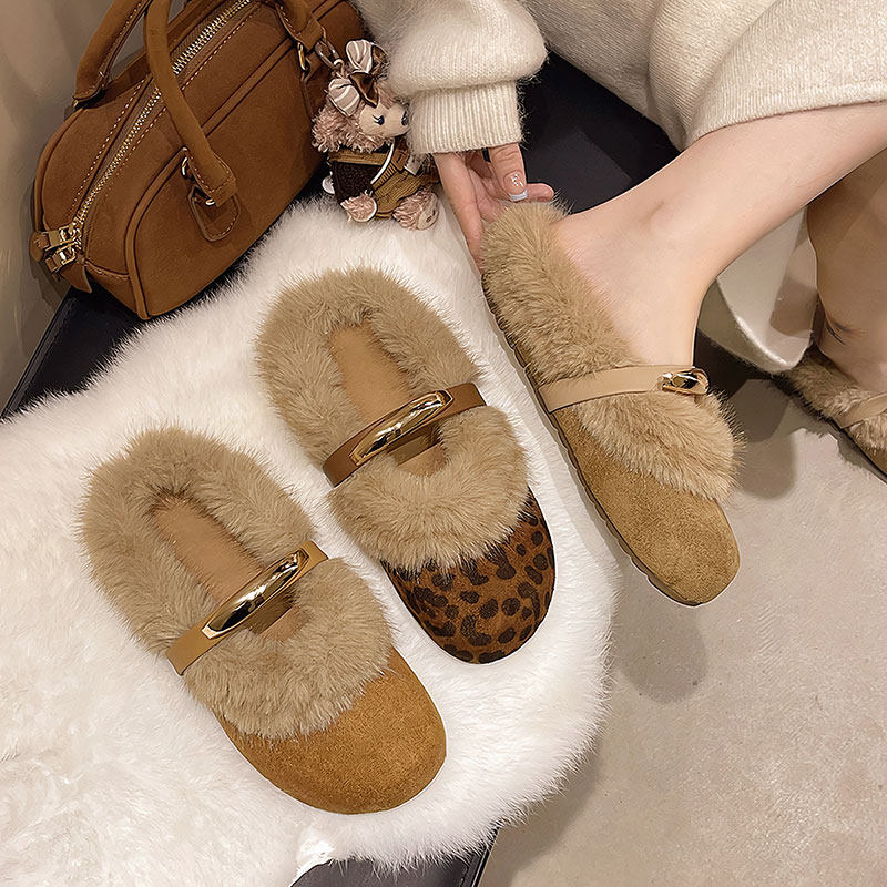 水貂绒包头半拖鞋女外穿2025新款秋冬美拉德一字带加绒防滑棉拖鞋