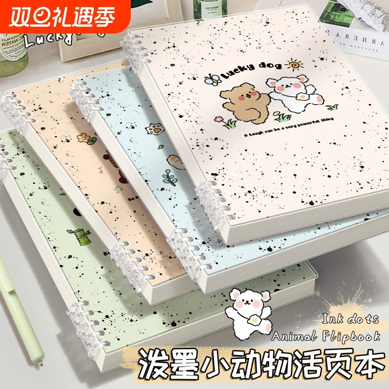 泼墨动物活页本笔记本本子B5可爱线条小狗高颜值A5线圈本记录本日记本加厚高中大学生考研横线替芯记事本网格