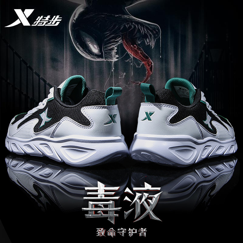 特步跑步鞋男鞋冬季新款黑色运动鞋皮面防泼水爸爸减震网面休闲鞋