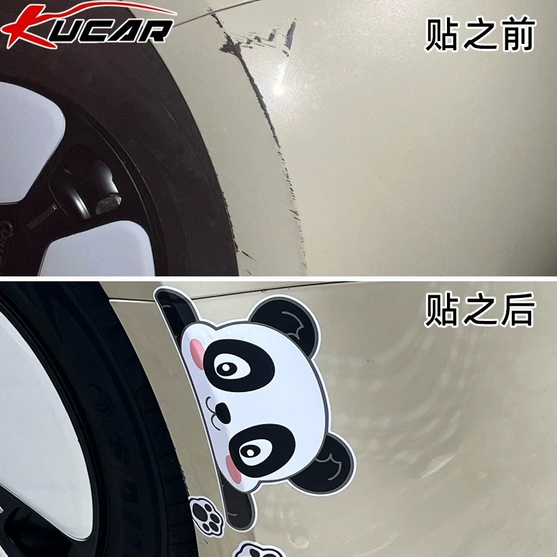 汽车贴纸划痕遮挡遮盖前后保险杠创意卡通熊猫刮痕防水防晒大面积