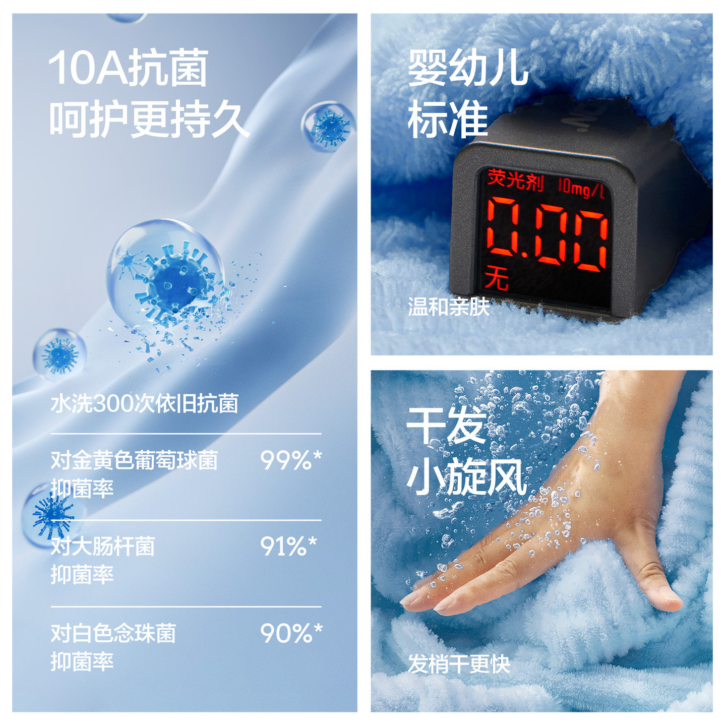 三利7A抗菌纯棉毛巾防螨吸水透气亲肤可挂小方巾家用洗脸擦手巾