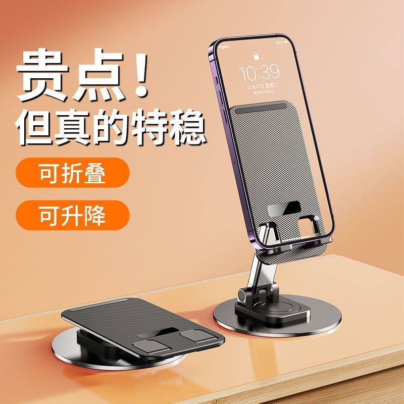 金属底座加重手机桌面支架2024新款旋转360°床头懒人直播桌上拍摄折叠折叠升降多功能通用便携手机架支架