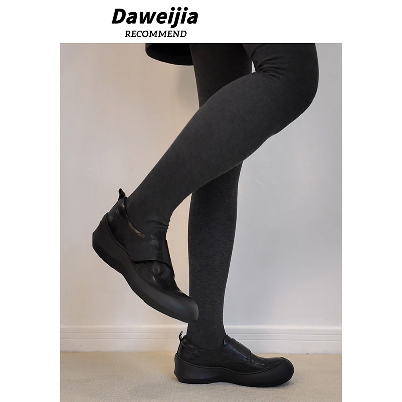 版~软皮软底小皮鞋女黑色厚底绝美运动单鞋内增高法式魔术贴浅口